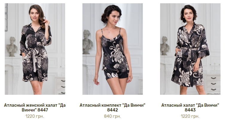 Так, если вы давно мечтали о сексуальном комплекте в красных тонах с кружевной отделкой, то смело оформляйте покупку. Если мечтали купить халат длиной в пол и пижаму тройку в одном стиле — выбирайте модели, расцветку, производителя и оформляйте заказ на нашем сайте, чтобы уже через 1-3 дня радоваться комфортному и стильному домашнему наряду. Взгляните на варианты ниже.