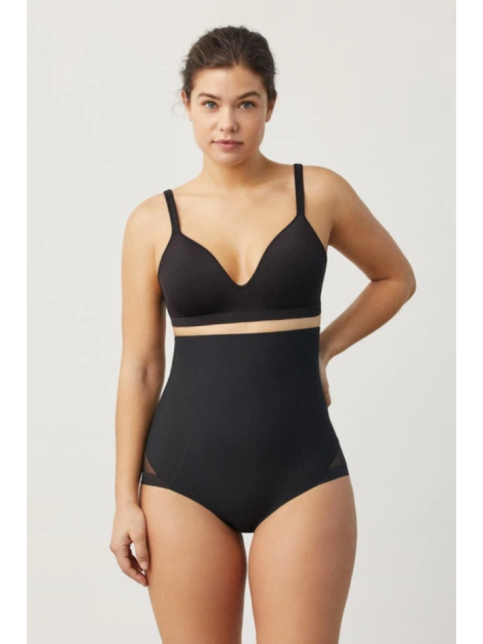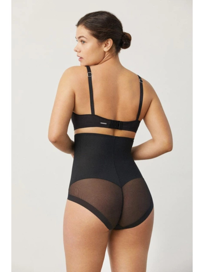 Высокие утягивающие трусы черного цвета Ysabel Mora — идеальное решение для тех, кто хочет подчеркнуть талию и добиться гладкого силуэта без заметных линий под одеждой. Модель с высокой посадкой и средней степенью коррекции аккуратно моделирует зону живота, талии и спины, визуально делая фигуру стройнее и подтянутее. Лазерная обработка краёв обеспечивает максимально плоское прилегание к телу, благодаря чему трусики остаются практически незаметными даже под облегающими платьями и костюмами. Глубокий чёрный цвет придаёт модели универсальность и элегантность, делая её незаменимой базой для повседневных и вечерних образов.