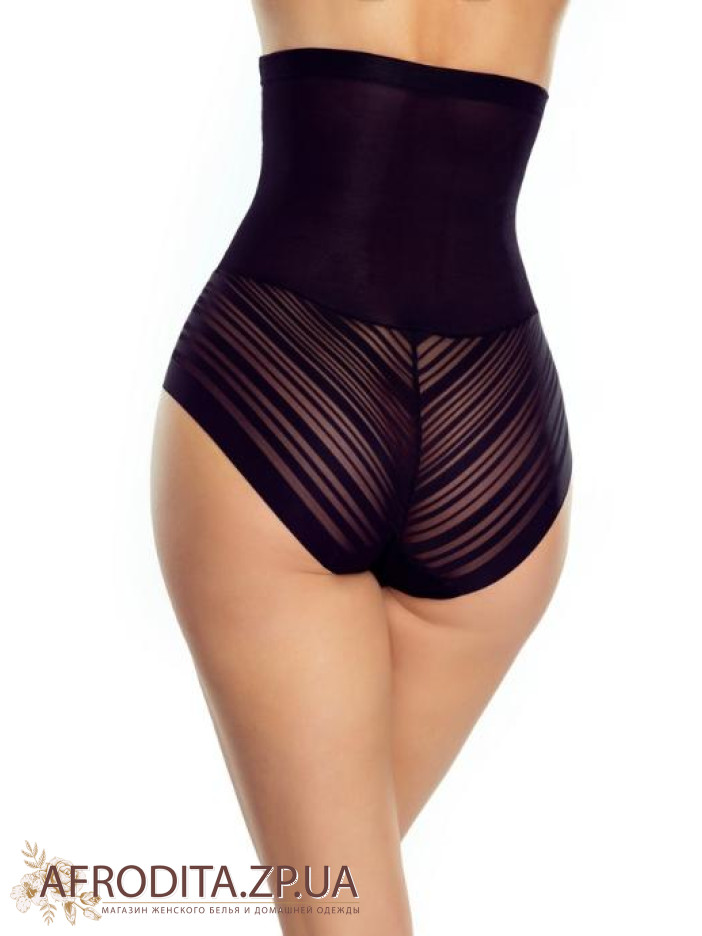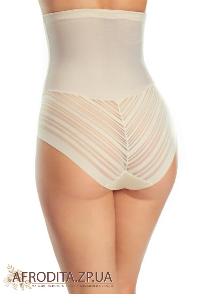 Женские трусы с высокой талией Eldar 134368 для коррекции фигуры в области живота, бёдер и ягодиц. Нижняя часть пошита из тонкой сетки с красивым узором из диагональных полос. Трусики с ластовицей из 100% натурального хлопка.