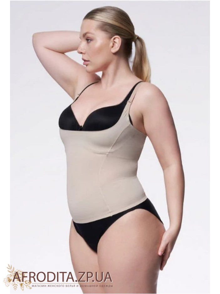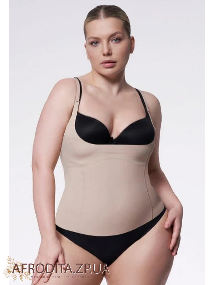 Женская корректирующая майка Julimex с открытой грудью. Бретели регулируются. вертикальные швы эластичные и растягиваются на теле, незаметны под одеждой.
