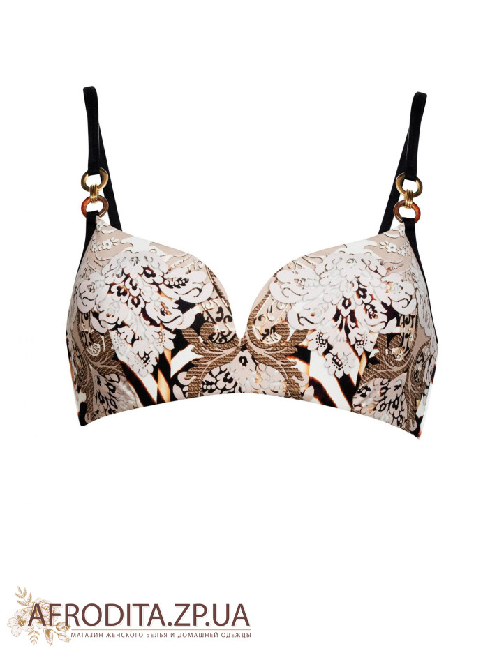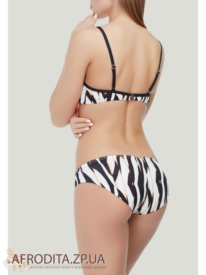 Мягкая чашка на каркасной поддержке с тонкой прослойкой. Бретели регулируются, отстегиваются на спинке, что дает возможность завязать их на шее, либо пристегнуть крест на крест. Плавки бразилиана полностью проложены вторым слоем высококачественной микрофибры.