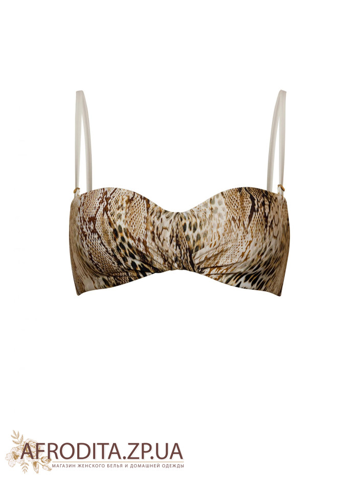 Купальник бандо Marc & André L2201-Y-992. Формованная чашка «бандо» на каркасной поддержке, со съемными корректорами «пуш-ап». Съемные бретели. На спине застежка. Анималистический принт «Placement» печать. Брифы со средней линией талии, полностью проложены вторым слоем высококачественной микрофибры. Спереди лифа и по бокам плавок декоративные перекруты. Состав85% полиамид, 15% эластан