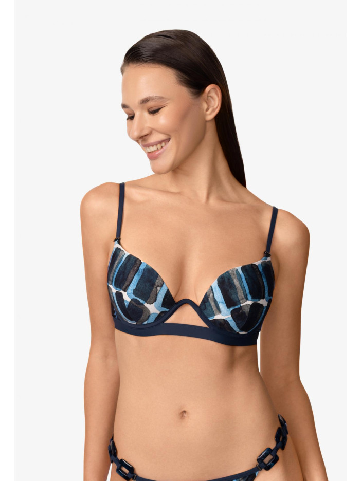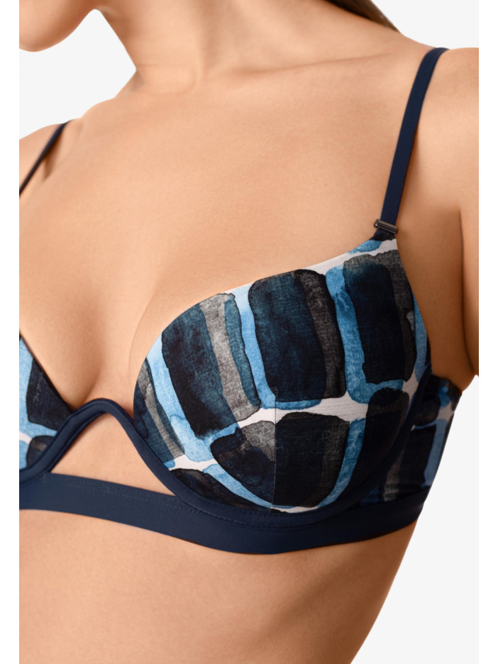 Эксклюзивный акварельный принт серии ELEVATED MIND от Marc & André притягивает взгляд своей утончённостью и лёгкой ностальгией. Плавные линии и силуэт подчеркивают женственность, а геометрические декоративные элементы добавляют образу современную динамику и стиль. Формованная чашка с съёмными корректорами push-up на монокаркасной поддержке обеспечивает красивую форму и уверенную поддержку. Эластичная резинка под грудью дарит дополнительный комфорт и надежную фиксацию, а регулируемые бретели и застёжка на спине позволяют идеально настроить посадку.
