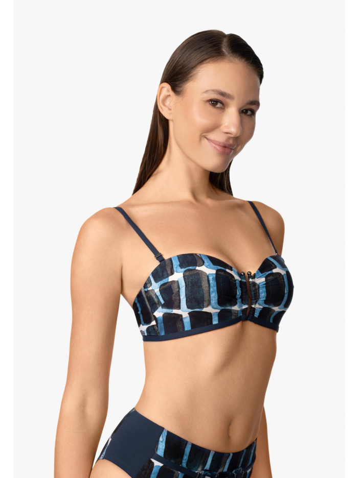 Эксклюзивный акварельный принт серии ELEVATED MIND от Marc & André очаровывает своей утончённостью и лёгкой ностальгией. Плавные линии силуэта мягко подчеркивают женственность, а геометрические декоративные элементы добавляют образу изысканную динамику и современный характер. Формованная чашка «бандо» на силиконовой каркасной поддержке обеспечивает идеальную посадку и надежную фиксацию, оставаясь практически неощутимой на теле. Съёмные бретели позволяют менять стиль и носить модель разными способами, а удобная застёжка на спине гарантирует комфорт. Центральный аксессуар между чашками фиксирует вырез и завершает элегантный дизайн.