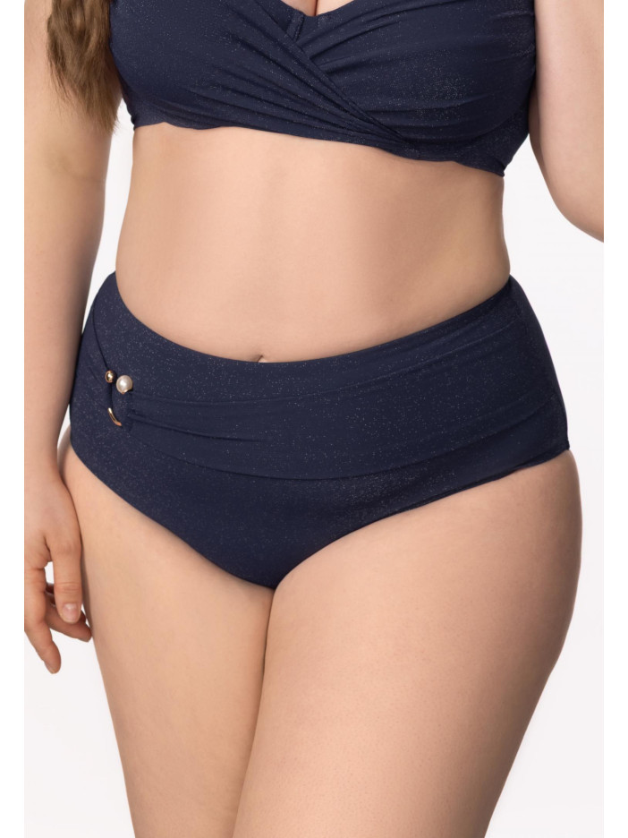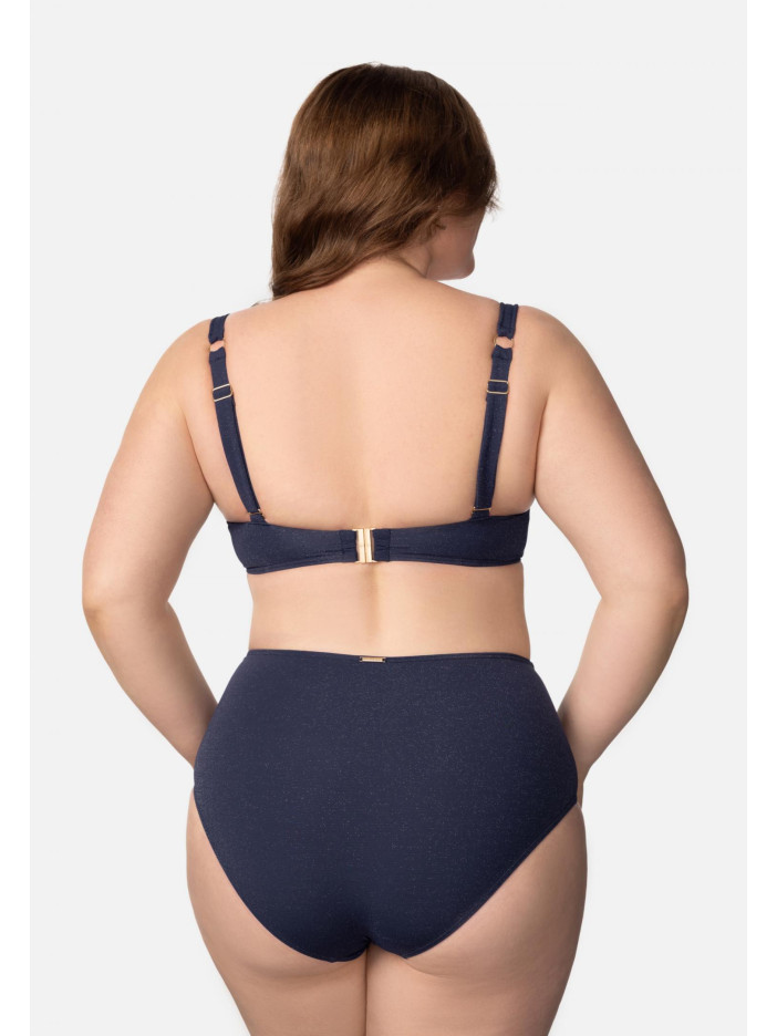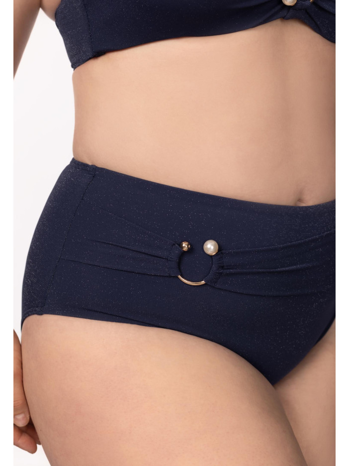 Серия MIDNIGHT RAIN вдохновлена загадочной красотой ночи. Глубокие темно-синие оттенки, как бархатное небо после дождя, подчеркнуты мягкими драпировками и легким блеском серебристой нити, пронизывающей ткань. Асимметричный крой, золотые аксессуары с жемчужными акцентами и подкладка в тон создают ощущение утонченной гармонии и безупречного стиля. Брифы с повышенной посадкой подчеркивают талию и создают элегантный силуэт. Широкий пояс спереди с асимметричной драпировкой и аксессуаром придает изяществу и стильному акценту образа.