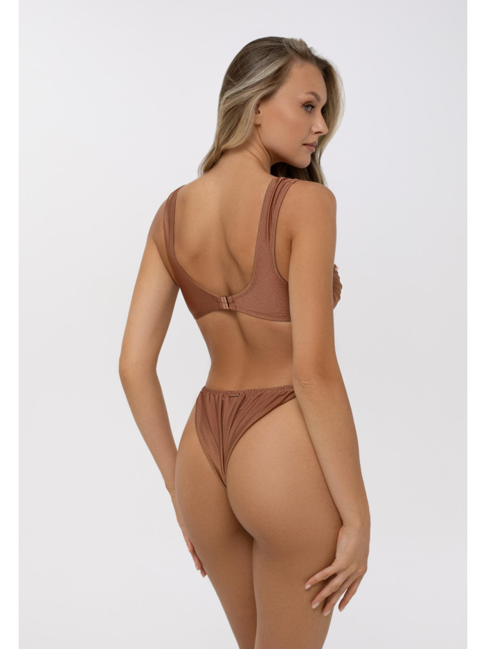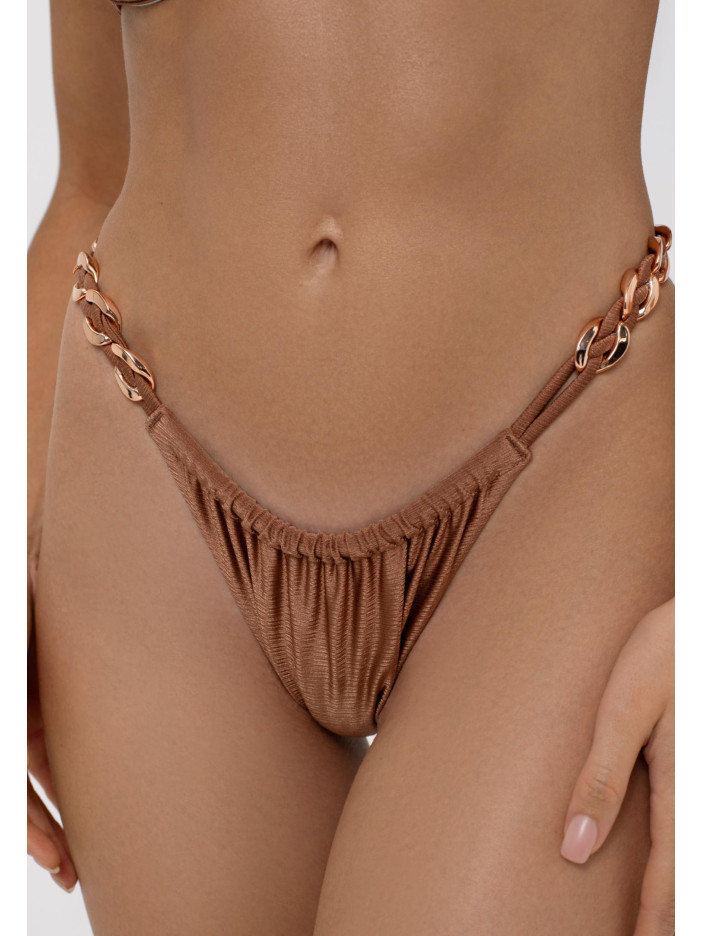 Мидный оттенок с мягким блеском Модель «бразилиана» с заниженной талией Боковое плетение с аксессуарами Декоративное драпирование спереди и сзади