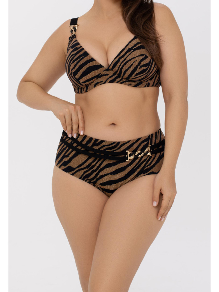Хищный и завораживающий — серия DARK GLOW притягивает взгляды с первого момента. Объёмная текстура ткани, природные оттенки и изящная золотистая нить создают эффект глубины и мягкого сияния при любом освещении. Ультрамягкий эластичный материал идеально повторяет контуры тела, обеспечивая комфорт и уверенность. Плавки с завышенной линией талии красиво подчеркивают силуэт, а декоративный пояс с аксессуаром на передней детали добавляет изысканный акцент. DARK GLOW — баланс соблазна, стиля и комфорта в каждой детали.