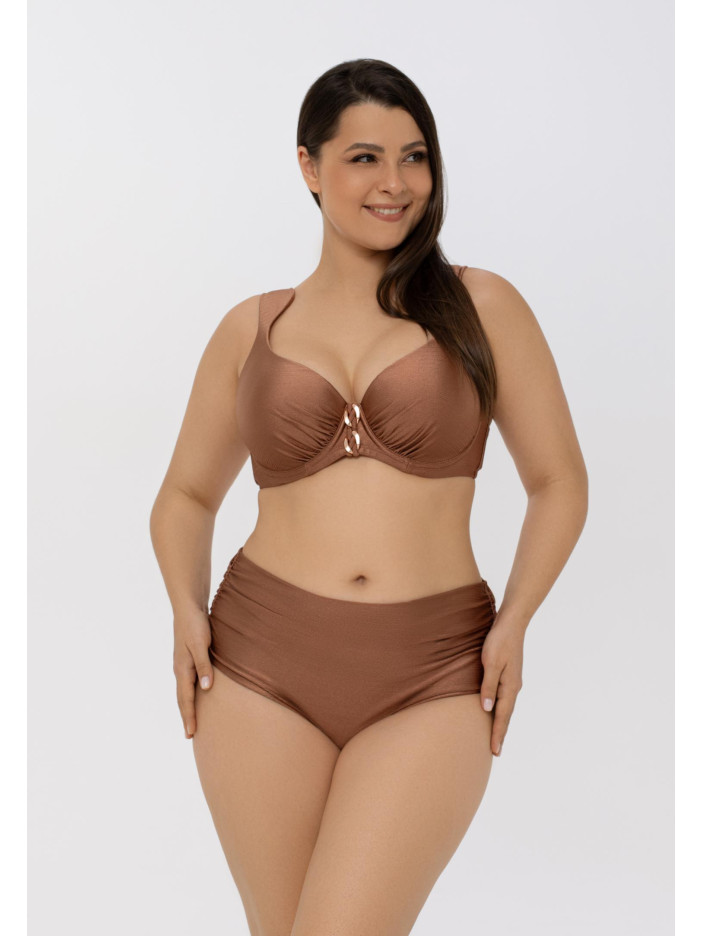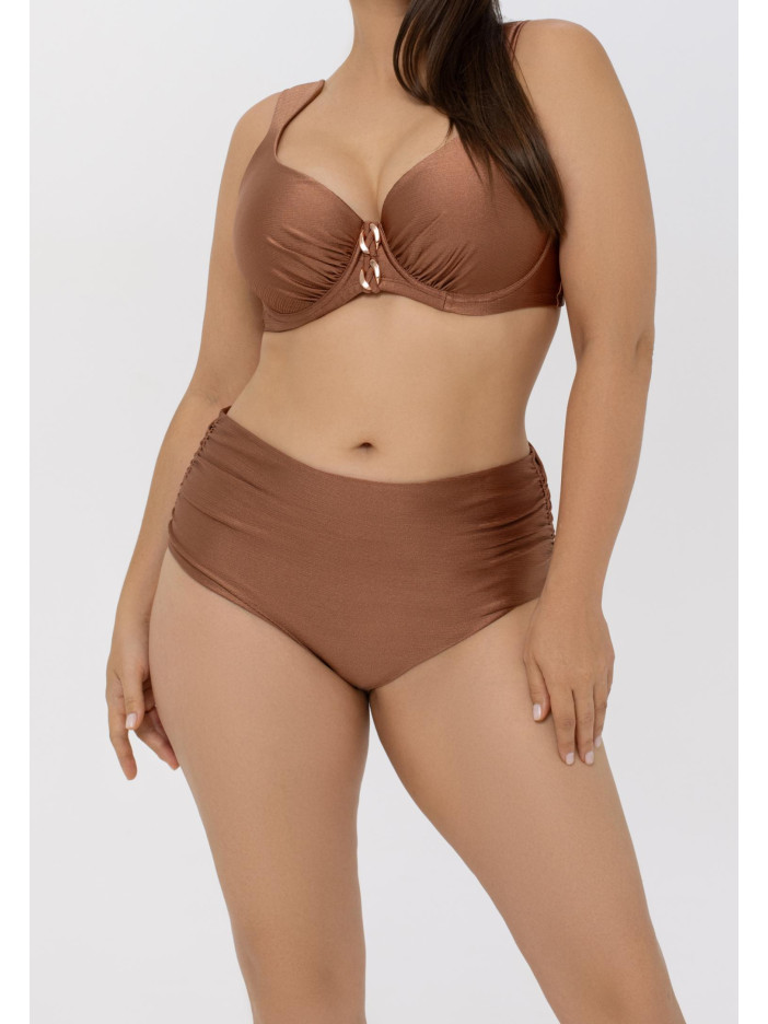 Подчеркните элегантность с плавками SOFT AESTHETIC — моделью в модном мидном оттенке с мягким блеском, создающим эффект «жидкого металла». Этот перелив придаёт глубину однотонному образу и подчёркивает естественную женственность.