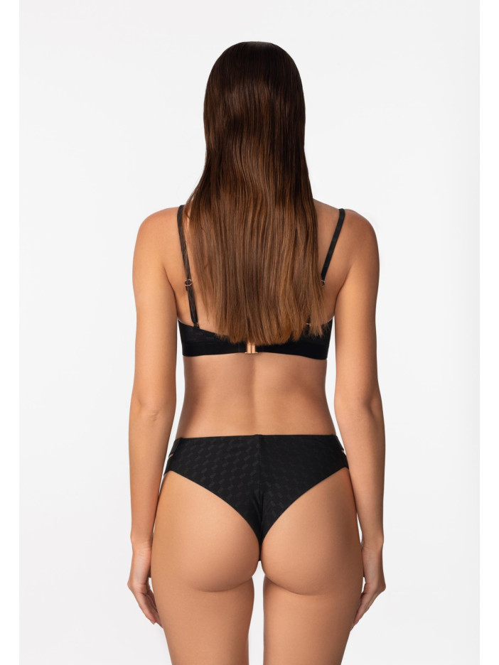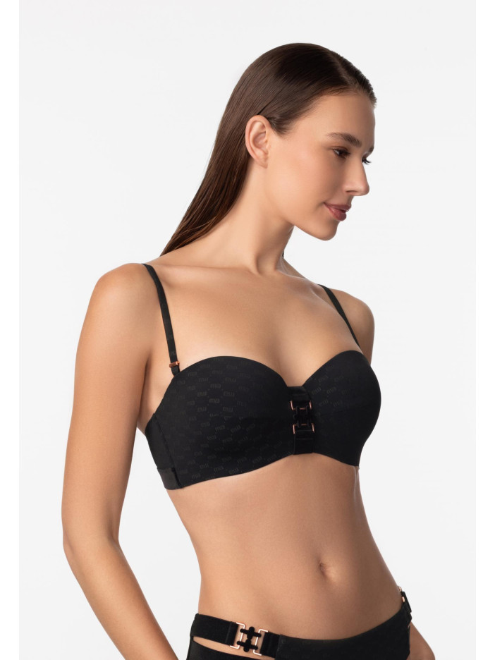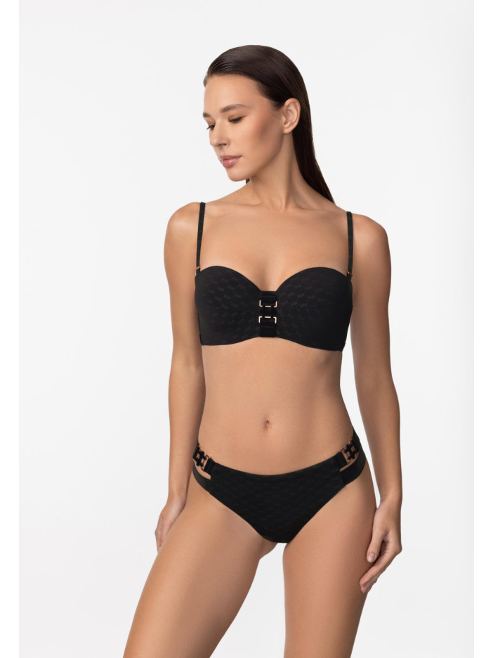 Элегантность и роскошь в каждой детали — купальник из изысканной жаккардовой серии LUXURY FRAGRANCE от Marc & André создан для эффектных образов. Глубокий черный цвет в сочетании с фирменным логотипом и бархатными вставками подчеркивает женственность и добавляет образу утончённости. Инновационная подкладка с микрокапсулами, содержащими экстракт чайного дерева, обеспечивает деликатный уход за кожей и дарит ощущение свежести на протяжении всего дня. Формованная чашка «бандо» на косточках красиво подчеркивает линию плеч и декольте, создавая изящный силуэт. Центральный декоративный элемент добавляет акцент, а съёмные бретели позволяют менять образ по настроению. Удобная застёжка на спине обеспечивает комфортную и надежную посадку.