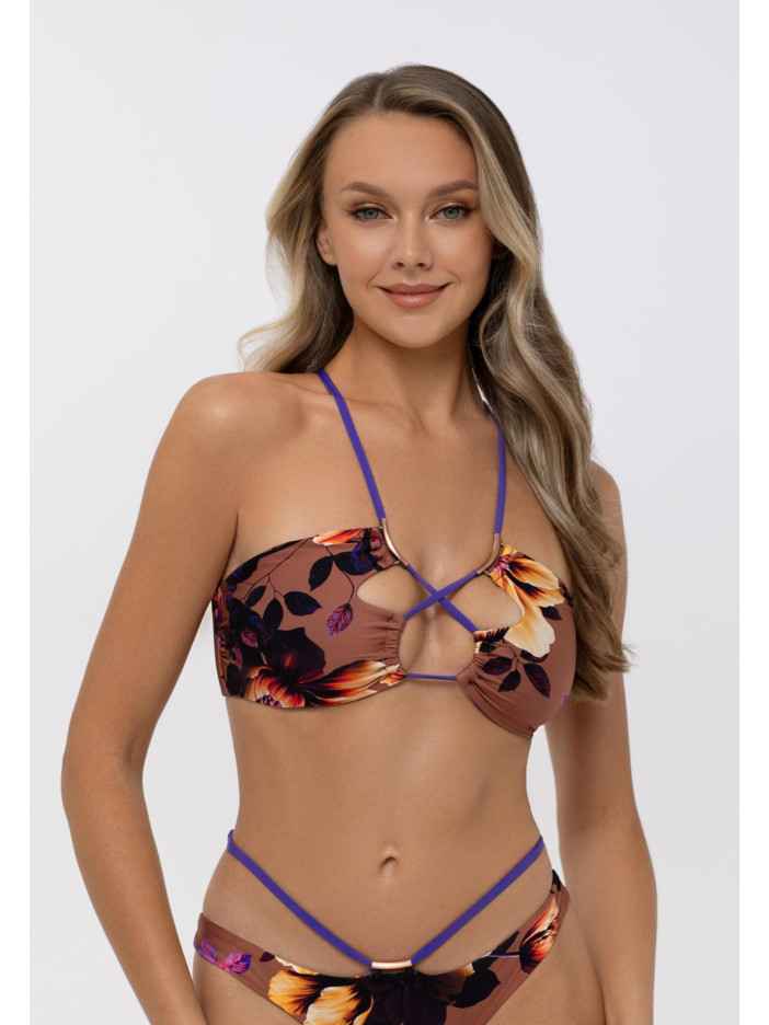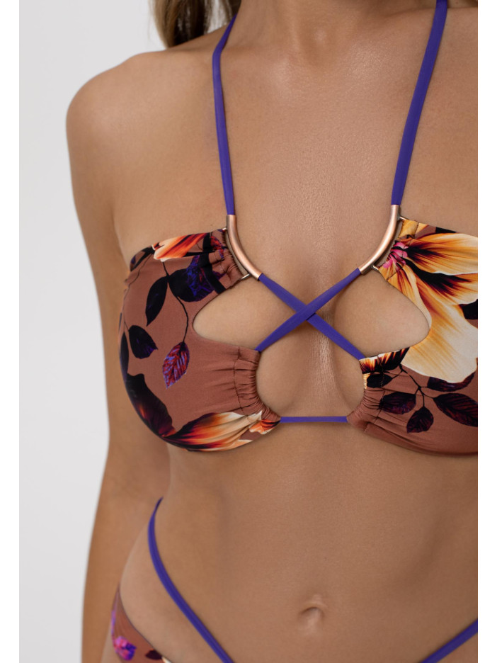 Эксклюзивный флористический принт Терракотовый фон и лиловая подкладка Мягкая чашка без косточек Съёмные корректоры Регулируемое декольте и вырез на спине Открытая спина Аксессуары цвета розового золота