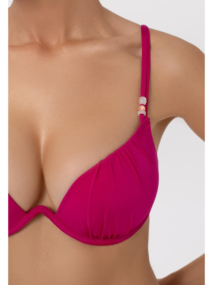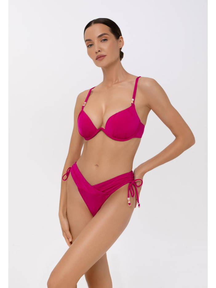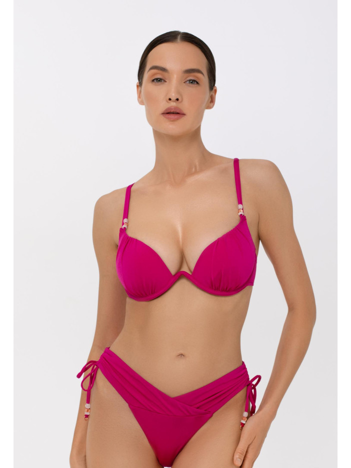 Розовая лихорадка захватывает мир моды — и мы предлагаем ей поддаться! Яркая фуксия серии CANDY создаёт летнее настроение и беззаботность. Верх купальника с формованными чашками, съемными пуш-ап коректорами и монокаркасной поддержкой подчёркивает грудь, а регулируемые бретели-спагетти с декоративными бусинами добавляют игривости. Застёжка на спине обеспечивает идеальную посадку и комфорт.
