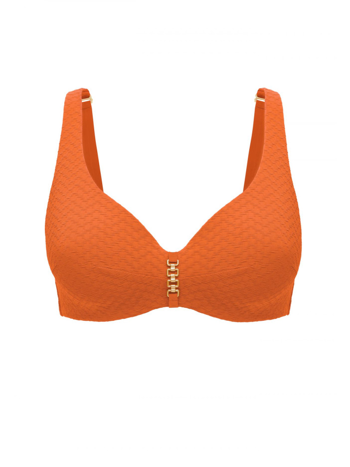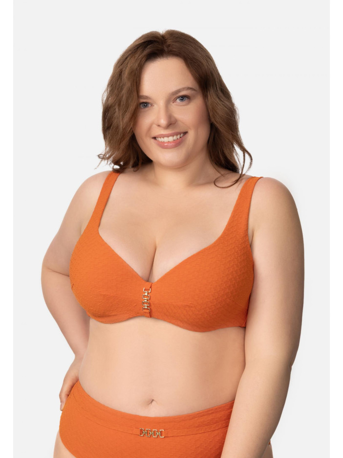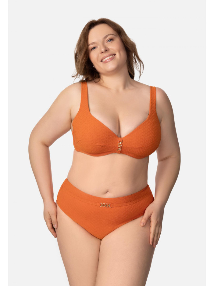 Яркий, как закат над морем, оранжевый оттенок серии SENSATION наполняет каждое мгновение лета светлой радостью. Роскошная жаккардовая ткань и изящные аксессуары создают классические, но женственные силуэты. Формованная чашечка на косточках. Углубленная линия декольте. По центру между чашками аксессуар. Широкие бретели с поролоновой вставкой для комфортной и уверенной посадки. На спине застежка.