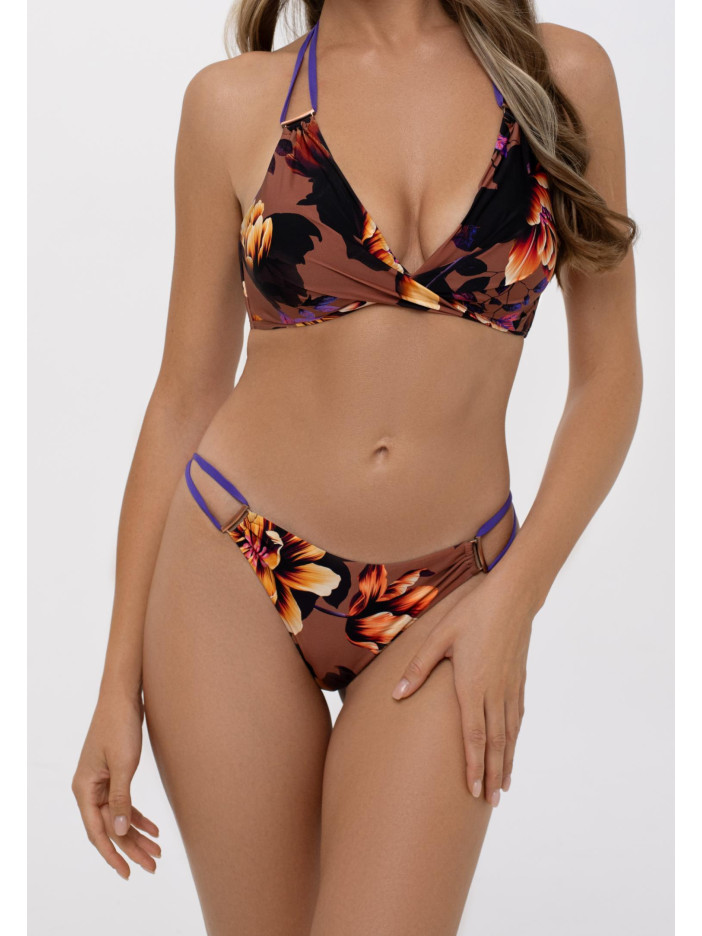 Эксклюзивный флористический принт Модель «бразилиана» с заниженной талией Боковые вставки из эластичной тесьмы с аксессуарами Вертикальный шов на задней детали Обработка с чистым краем Аксессуары цвета розового золота