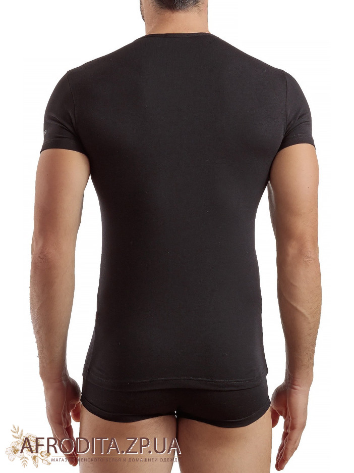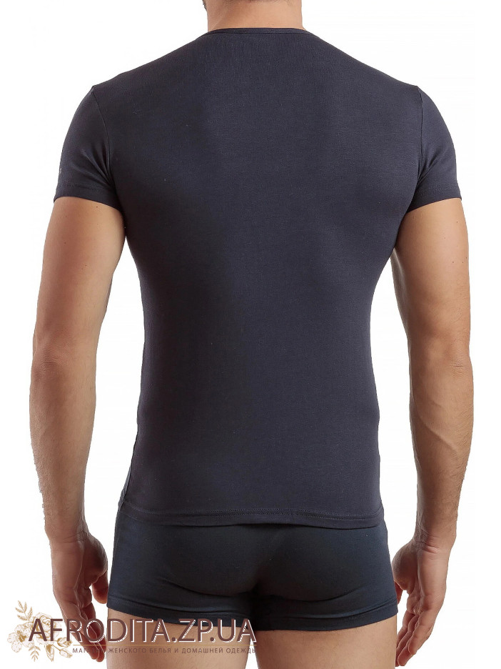 Модель выполненна из хлопка с добавлением эластана. Выполнена из однотонного эластичного хлопкового полотна мягкого и приятного к телу. Облегающего силуэта с коротким рукавом, с круглым вырезом горловины.