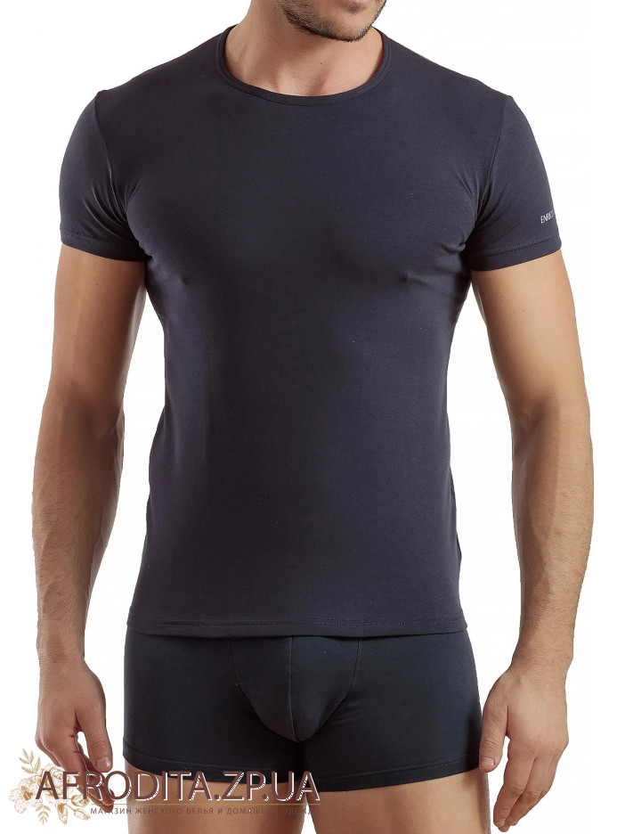 Мужская однотонная футболка Enrico Coveri ET1000 с коротким рукавом и круглым вырезом.