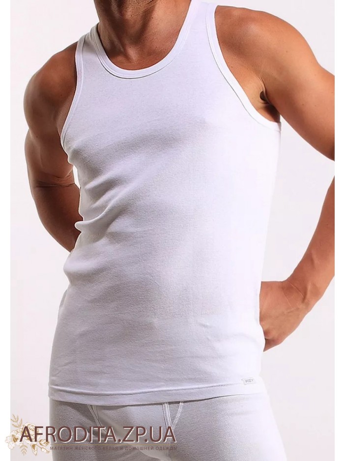 Мужская майка на широких бретелях с полукруглым вырезом из мягкого хлопка.