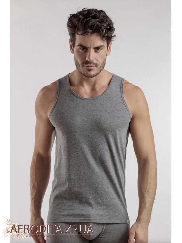 Мужская майка Enrico Coveri ET1102 с боковым швом, на широких бретелях. Модель изготовлена из тонкого хлопкового трикотажа.