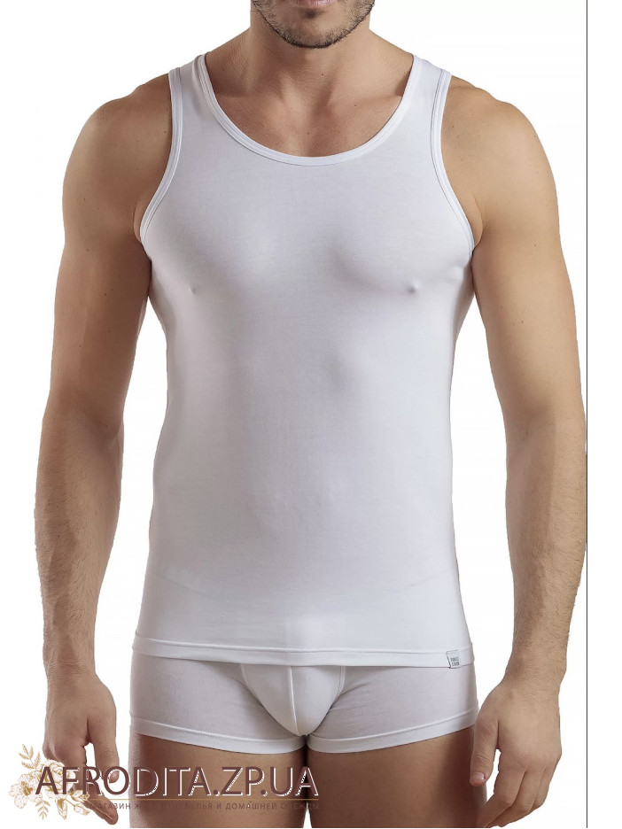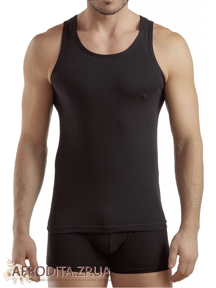 Мужская майка Enrico Coveri ET1302 на широких бретелях. Модель с очень тонким плетением "вязка в рубчик", которое не кашлатится. Добавление эластана помогает вещи не менять форму после стирки.