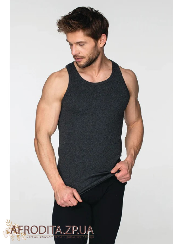Мужская майка на широких бретелях с полукруглым вырезом из мягкого хлопка.