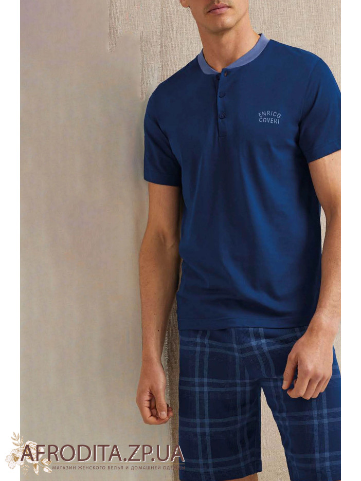 Мужской комплект пижамы Enrico Coveri с футболкой и шортами из легкого хлопкового трикотажа создан для дома, сна и уютного отдыха. Хлопковая футболка с коротким рукавом и планкой на пуговицах сочетается с клетчатыми шортами чуть выше колена – удобно и не жарко даже в тёплой комнате.