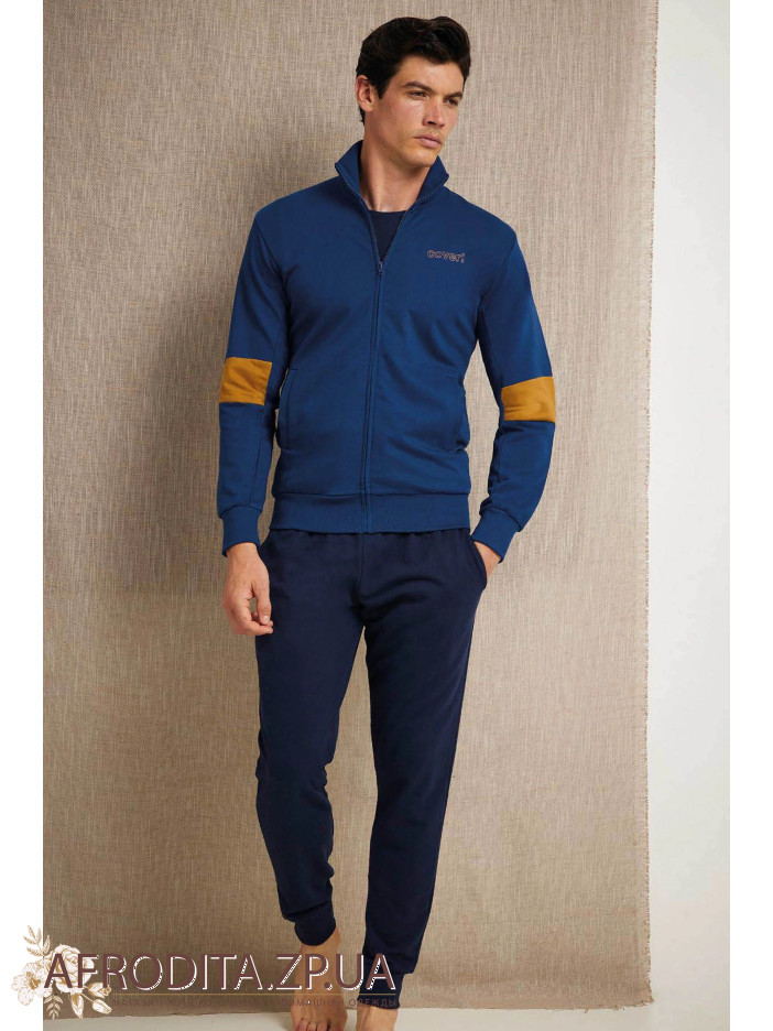 Мужской домашний костюм Enrico Coveri из мягкого хлопкового трикотажа создает ощущение уюта и собранного образа одновременно. Верх на молнии и прямые брюки в тон выглядят спокойно и современно, без лишних деталей.
