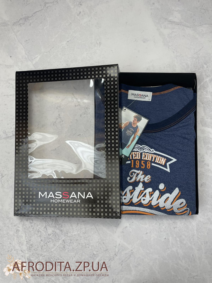 Мужская пижама Massana P231332, состоящая из майки с круглым вырезом. Шорты с регулируемой линией талией.