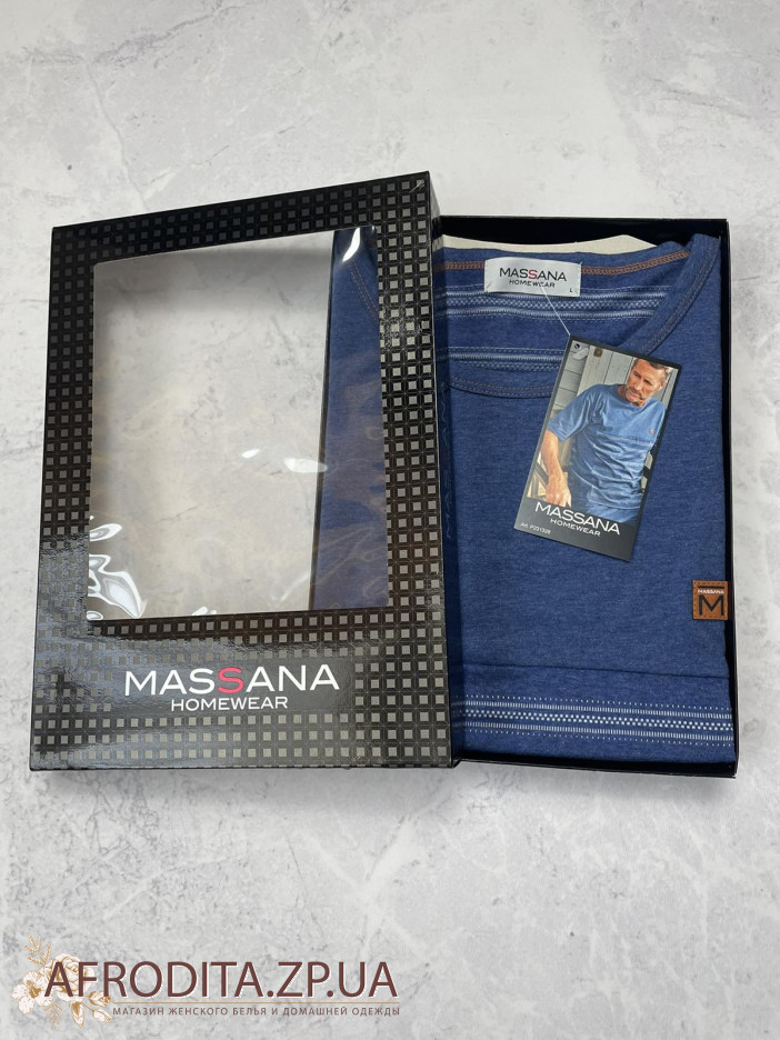 Мужская пижама Massana P231328 состоит из футболки с короткими рукавами и круглым вырезом горловины. Шорты с регулируемой талией.
