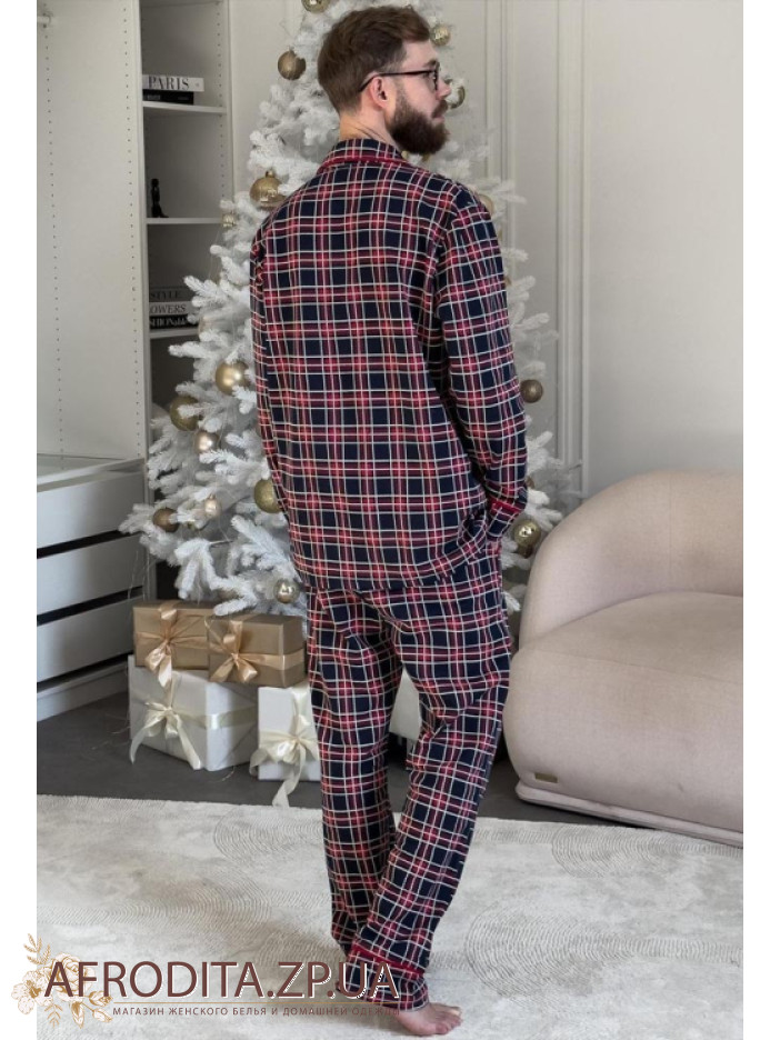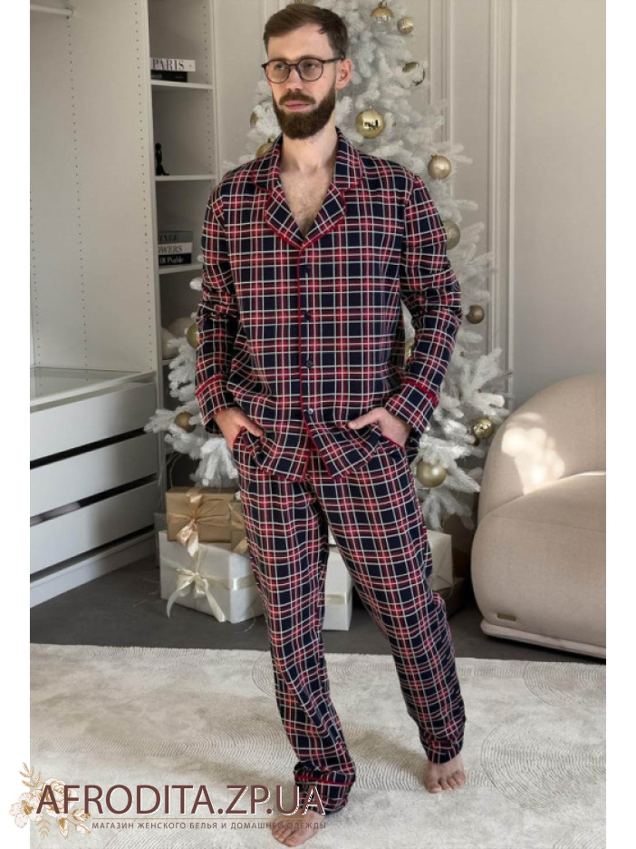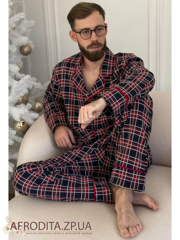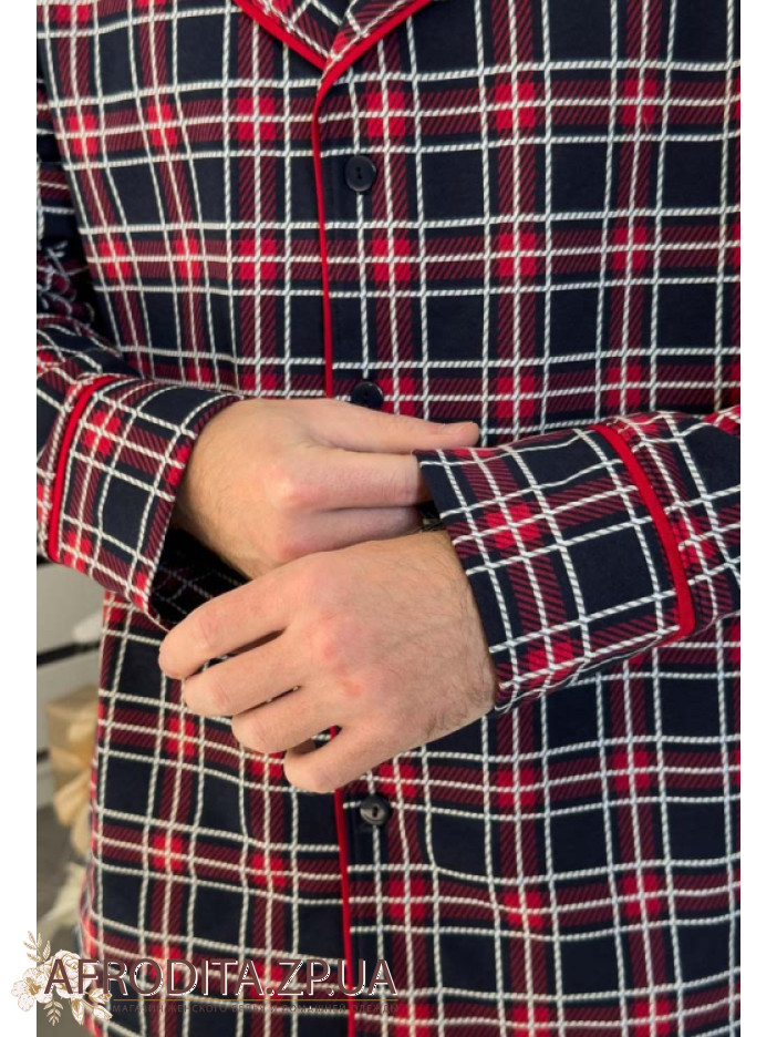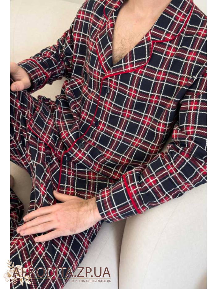 Мужская теплая пижама со штанами из мягкого высококачественного хлопка с начесом от украинского бренда Cosy. Комплект состоит из рубашки прямого кроя с длинными рукавами, модель застегивается на пуговицы. Борт изделия, рукава и воротник декорированы красным кантом. Штаны свободного кроя на резинке в области талии, по бокам расположены карманы.