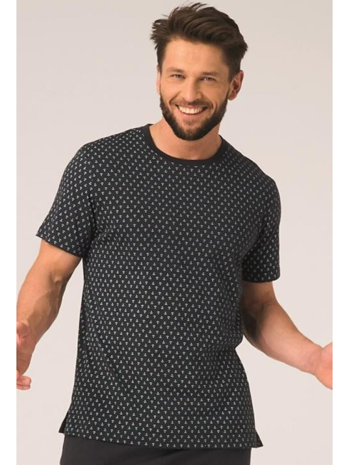 Модная мужская пижама от польского бренда Key — идеальный выбор для комфортного отдыха с акцентом на стиль. Выполненная из мягкого и качественного хлопка темно-синего цвета, она дарит приятные ощущения и позволяет коже дышать. Футболка украшена аккуратным принтом с голубыми якорями, создающим морское настроение и добавляющим образу свежести, а однотонные шорты с эластичным поясом и удобными карманами обеспечивают практичность и удобство. Свободный крой гарантирует комфортную посадку и полную свободу движений. Эта пижама отлично подойдет для сна, домашнего отдыха или поездок, а также станет стильным и полезным подарком для близкого человека.