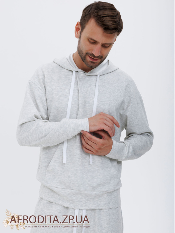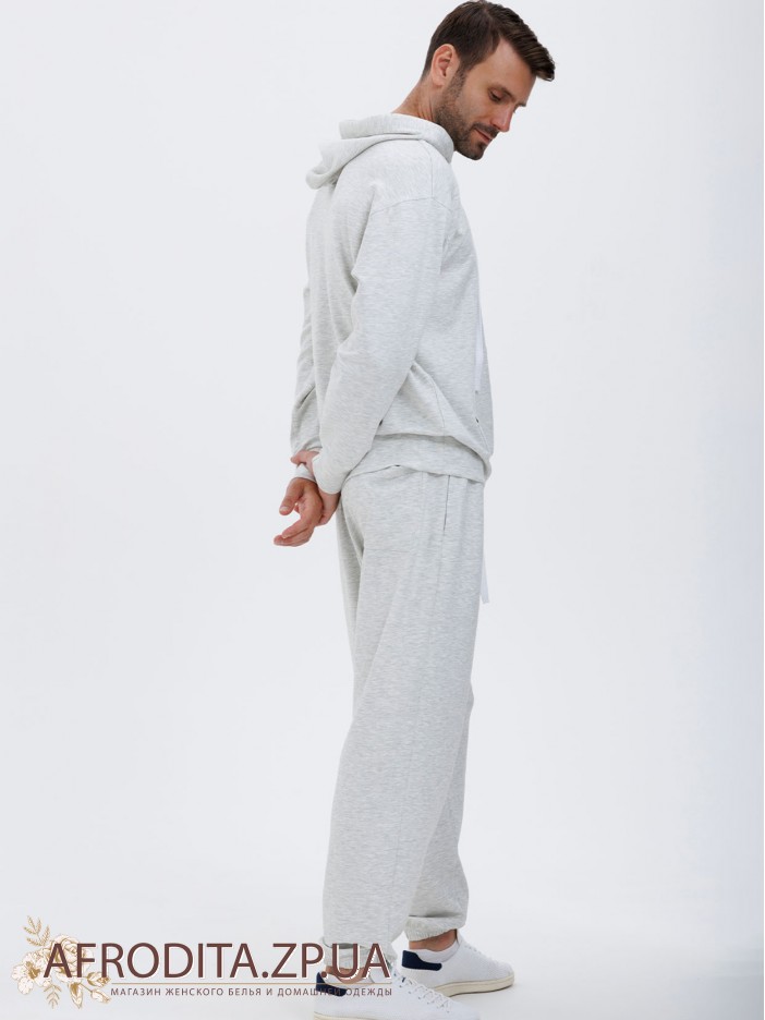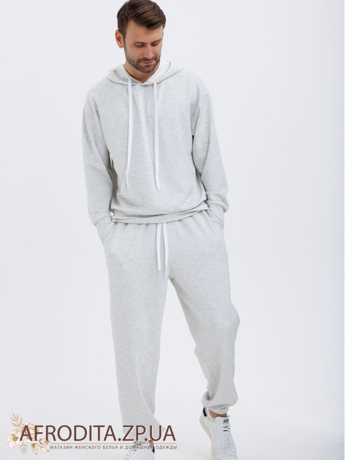Мужской костюм со штанами 1605-17001 из мягкой и очень приятной к телу вискозы. В комплект входит джемпер с длинными рукавами и капюшоном, штаны прямого кроя на резинке, по бокам расположены карманы, линию талии можно регулировать завязками. Костюм подходит как для активных прогулок так и для спорта.