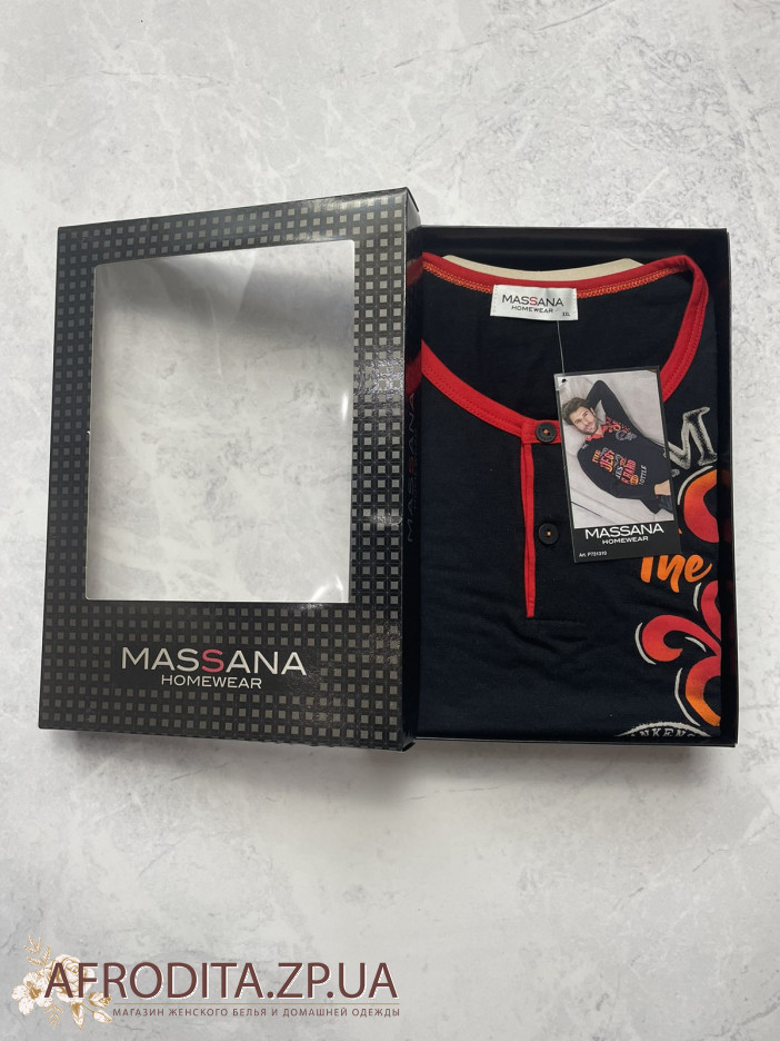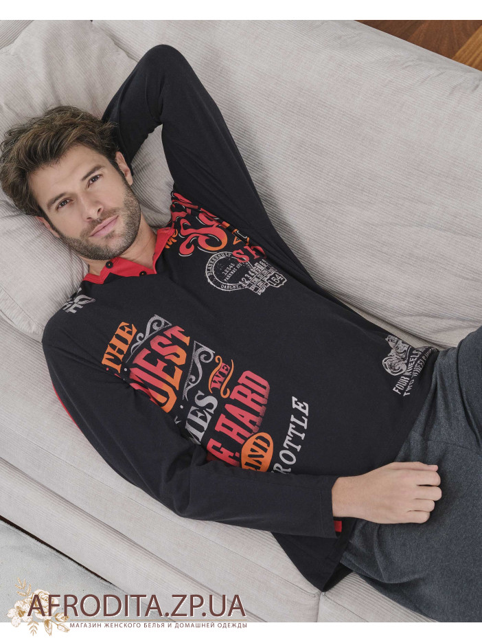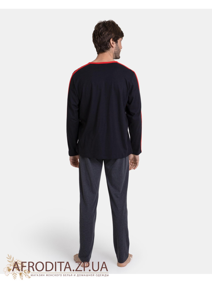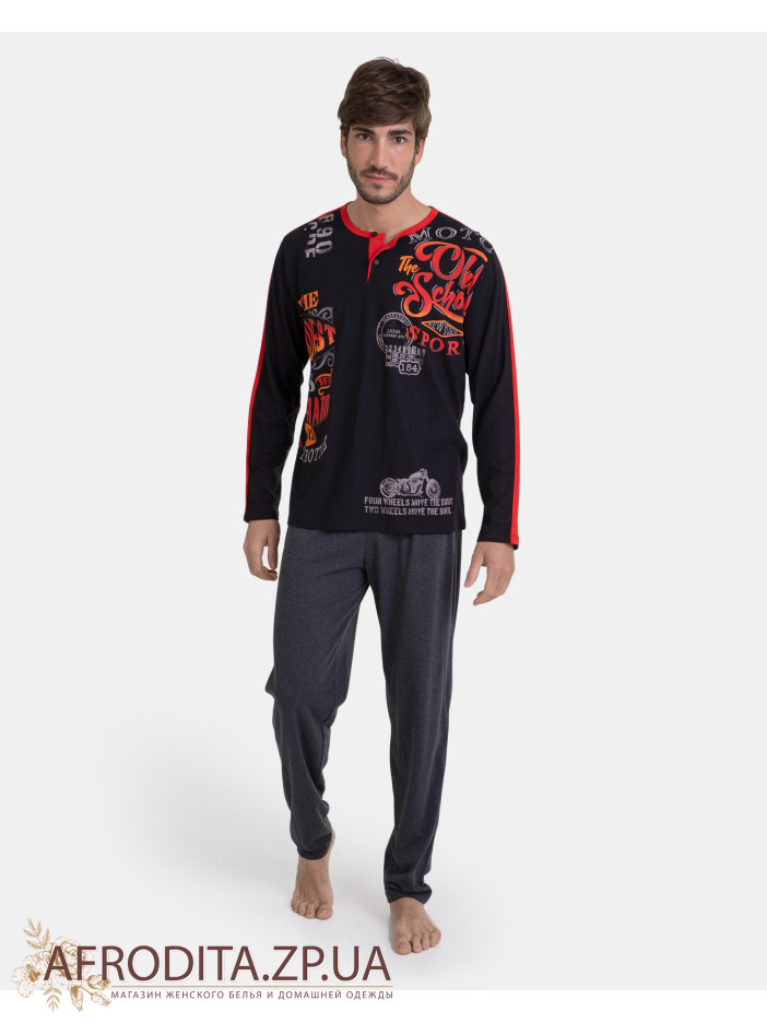 Пижама мужская с брюками Massana P731310 изготовленная из 100% хлопка и очень приятная к телу. Комплект состоит из кофты с длинными рукавами, горловина застегивается на пуговицы. Штаны однотонные серого цвета.