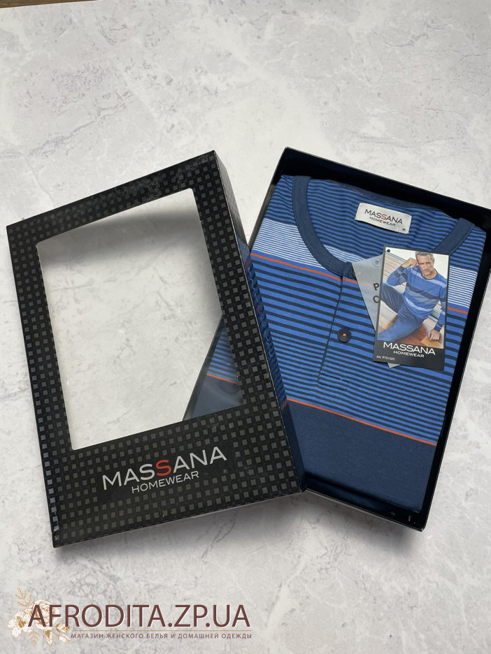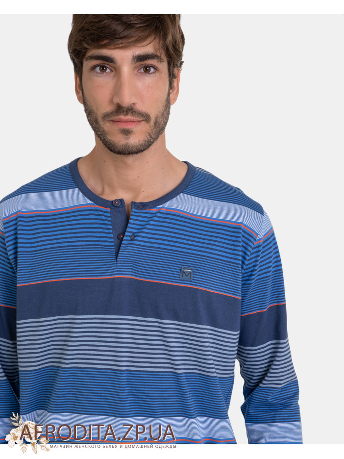 Пижама мужская с брюками Massana P731322 изготовленная из высококачественного хлопка. Комплект состоит из кофты с длинным рукавом и штанами с боковыми карманами.