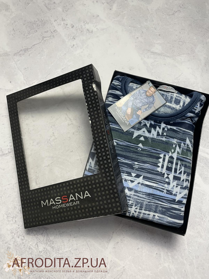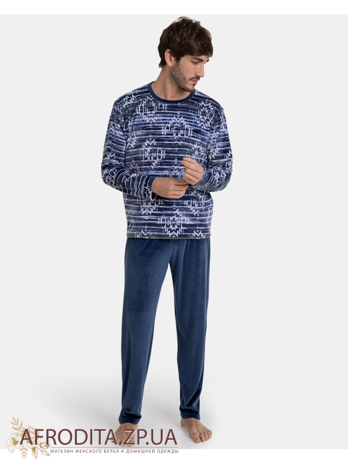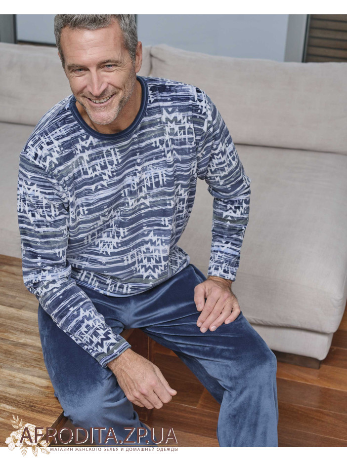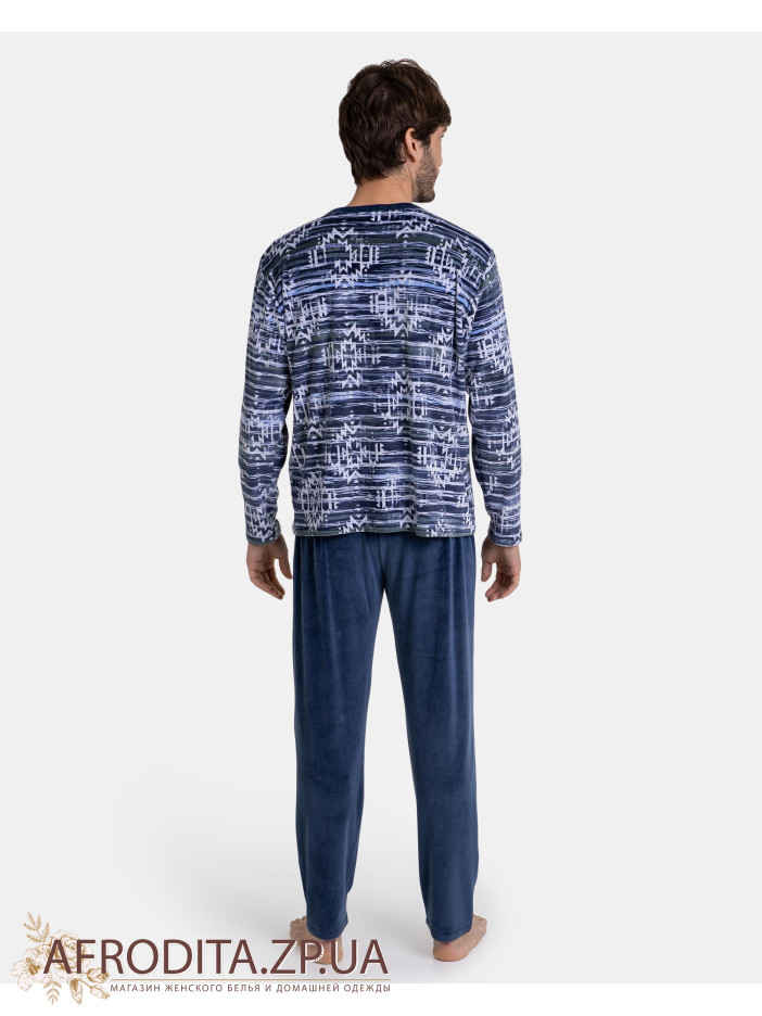 Мужская пижама с брюками из велюровой ткани Massana P731318. Костюм состоит их кофты с длинными рукавами и однотонных штанов прямого кроя.