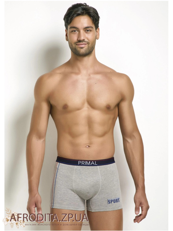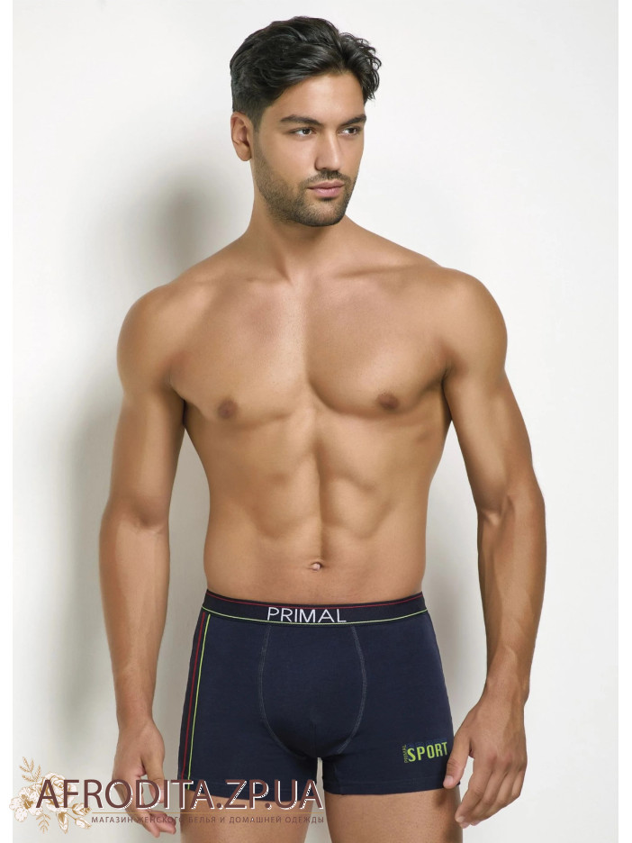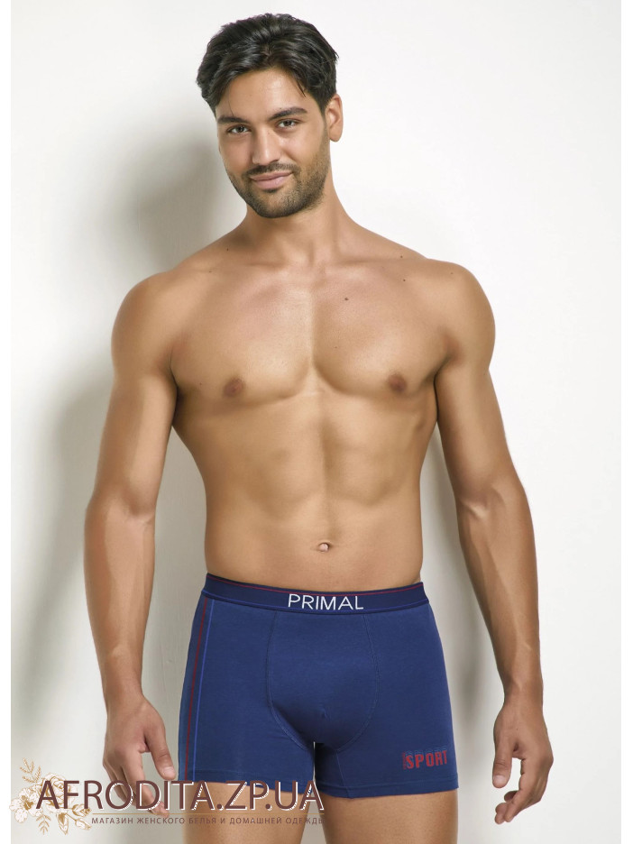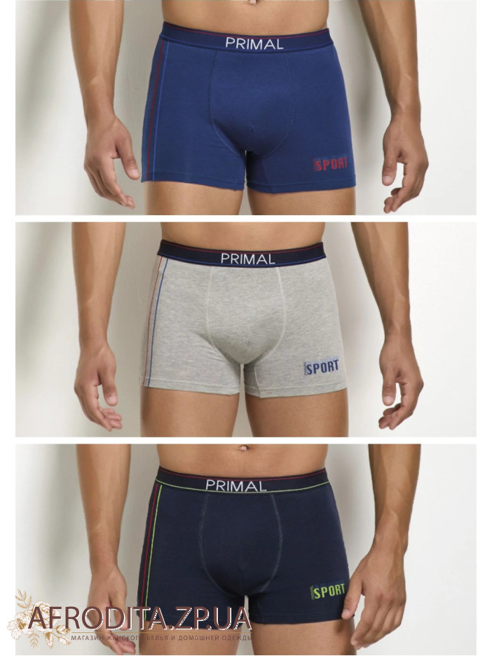 Мужские хлопчатобумажные трусы боксеры Primal B337. Набор из 3 штук в одной упаковке. Пояс на широкой эластичной резинке с контрастной полоской по кругу и надписью "PRIMAL". Задняя деталь изделия бесшовная. Удобная средняя посадка. Прилегающий фасон, позволяющий сделать трусы практически незаметными под одеждой. Котоновые трусы с добавлением эластана. Модель исполнена в сортивном стиле. В упаковке три цвета – синий, джинс, серый.