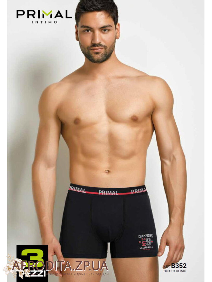 Мужские хлопковые трусы боксеры Primal B352. Набор из 3-х штук в одной упаковке. Цена указана за 1 ед. Пояс на широкой эластичной резинке c надписью "PRIMAL". Задняя деталь изделия беcшовная. Удобная средняя посадка. Прилегающий фасон, что позволяет сделать трусы практически незаметными под одеждой.