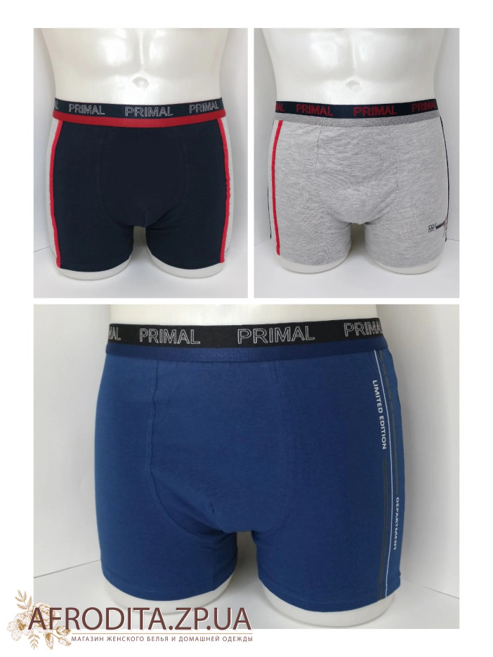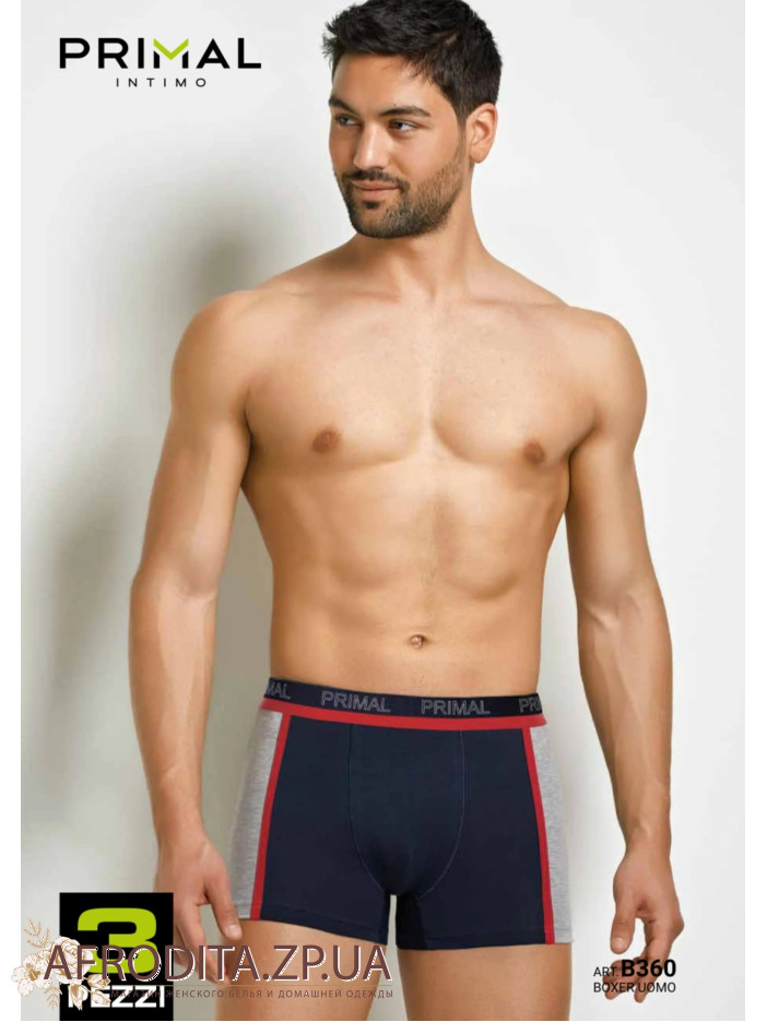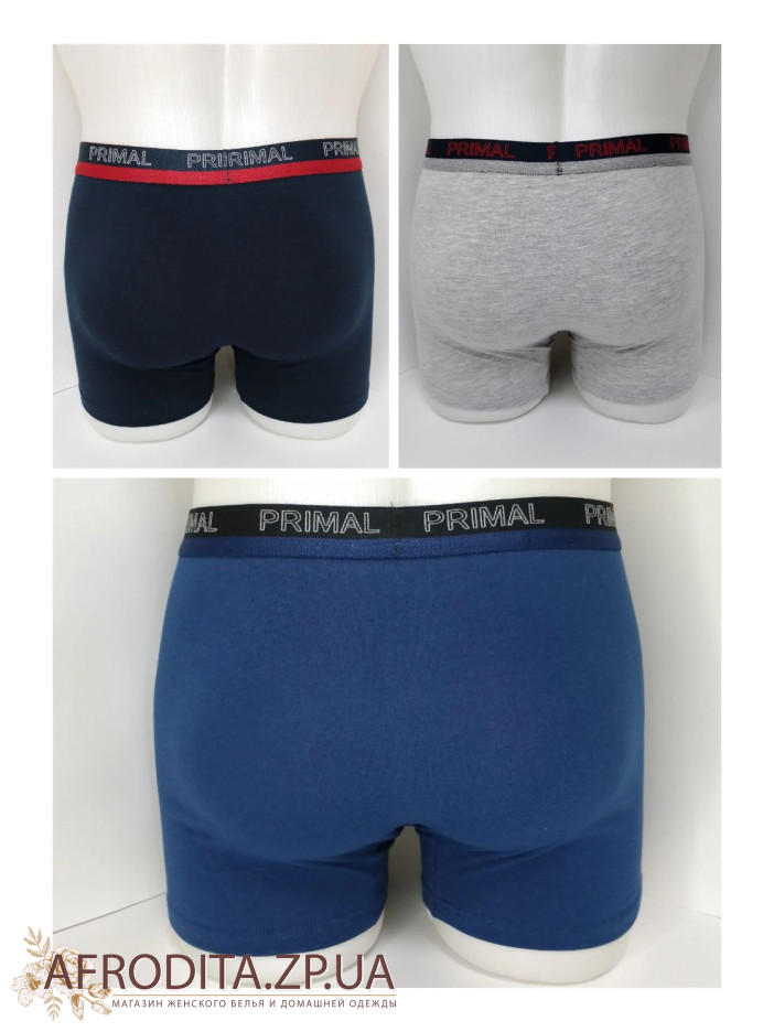 Мужские хлопковые трусы боксеры Primal B360. Набор из 3-х штук в одной упаковке. Цена указана за 1 ед. Пояс на широкой эластичной резинке c надписью "PRIMAL". Задняя деталь изделия беcшовная. Удобная средняя посадка.
