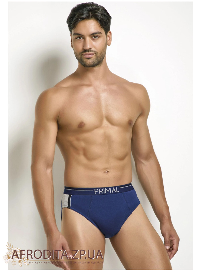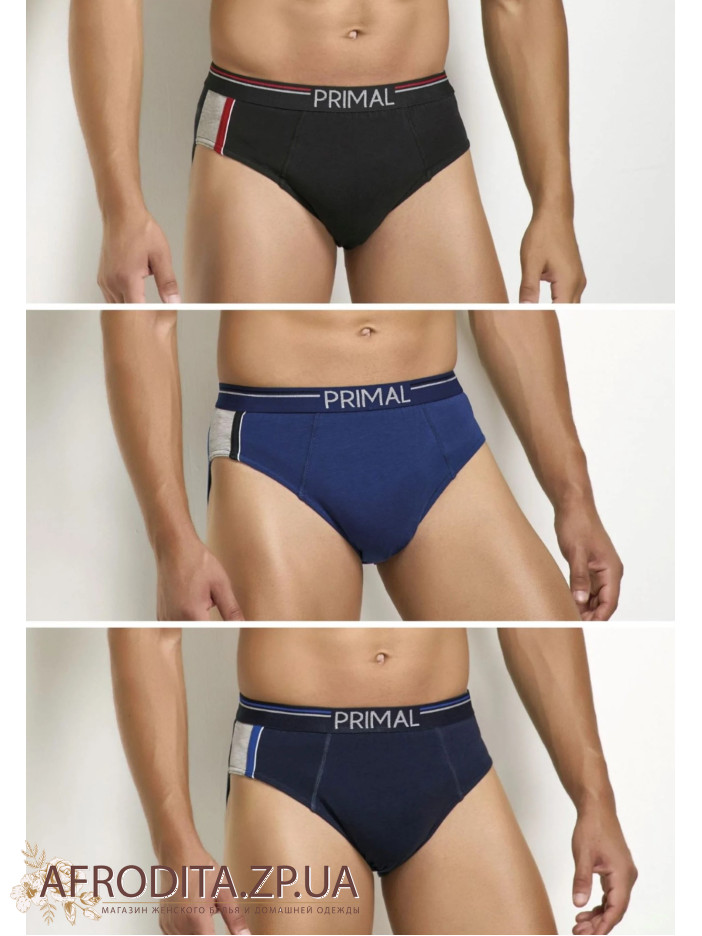 Трусы-слип Primal S333 на широкой эластичной резинке с контрастной круговой полоской и надписью PRIMAL по центру. Удобная посадка. Средняя высота боковых частей. Модель исполнена в сортивном стиле. В упаковке три цвета – синий, джинс, черный.