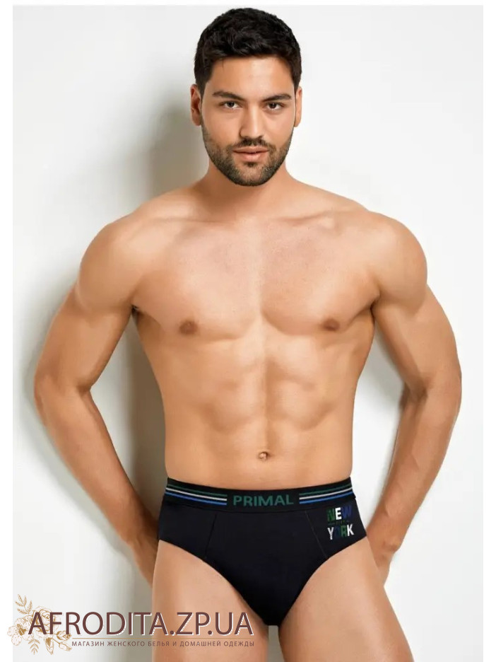 Мужские хлопковые трусы слипы Primal S325 (3 шт.) Пояс на широкой эластичной резинке с контрастными полосами по кругу и надписью "PRIMAL" по центру. Задняя деталь изделия бесшовная. Удобная средняя посадка. Прилегающий фасон, позволяющий сделать трусы практически незаметными под одеждой. В упаковке три цвета – черный, серый, синий.