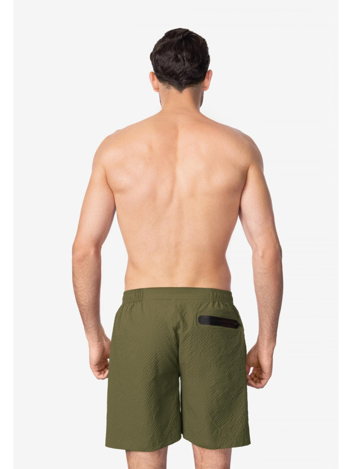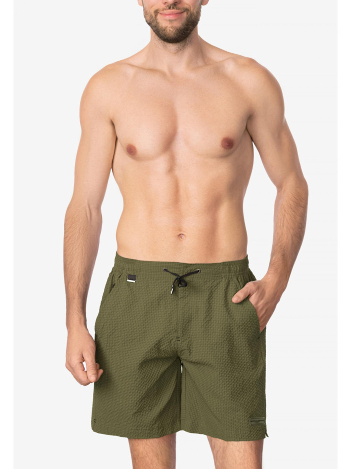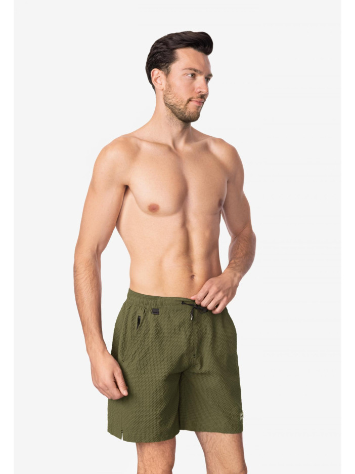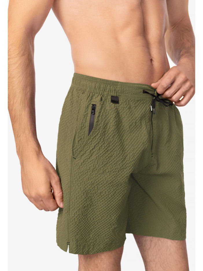 Мужские шорты свободного кроя из фактурной быстросохнущей ткани — идеальный выбор для пляжа и активного отдыха. Длина до середины бедра придаёт модели современный и универсальный силуэт. Функциональный дизайн включает боковые карманы, потайной карман на молнии внутри правого кармана и задний карман на молнии. Пояс на резинке со шнуровкой обеспечивает удобную посадку, а внутренняя мягкая сетчатая вставка гарантирует дополнительную поддержку и вентиляцию.