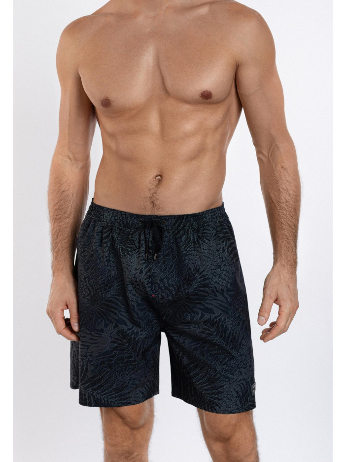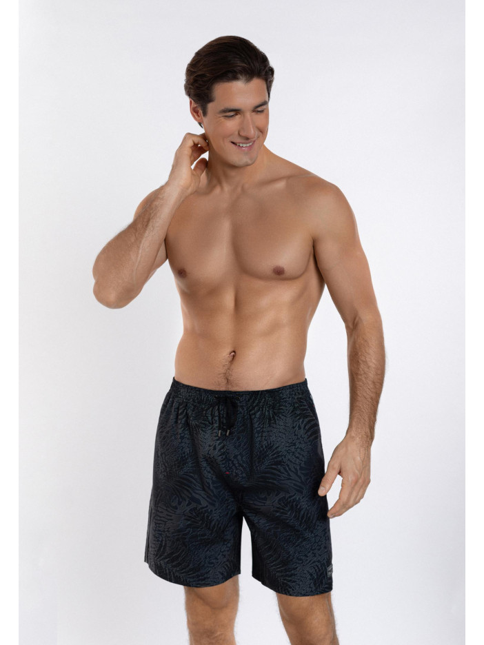 Мужские шорты свободного кроя из легкой быстро сохнущей ткани — идеальный выбор для активного отдыха и жаркой погоды. Длина до середины бедра обеспечивает комфорт и свободу движений. Модель оснащена двумя боковыми карманами и одним задним карманом с клапаном и застежкой на липучке для надежного хранения мелочей. Эластичный пояс с контрастным шнурком гарантирует удобную посадку, а мягкая сетчатая подкладка обеспечивает дополнительную вентиляцию и комфорт.