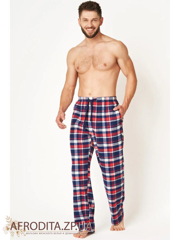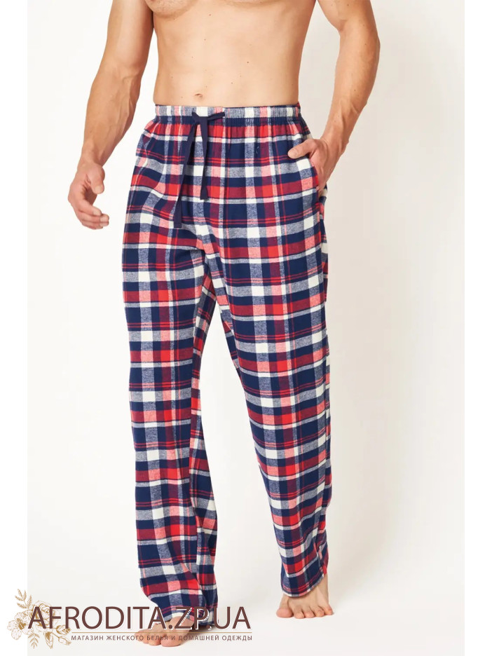 Мужские штаны для дома MHT 613 B24 из высококачественного хлопка. Штаны прямого кроя с боковыми карманами. Линия талии регулируется завязками.
