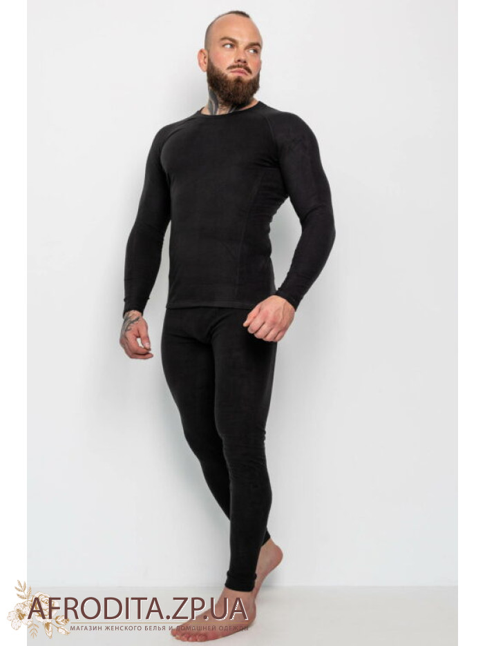 Мужской термокомплект из микрофлиса от украинского бренда Totalfit. Комплект состоит из кофты с длинными рукавами приталенного кроя и штанов.