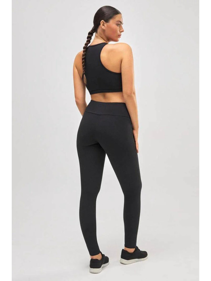 Чёрные спортивные леггинсы Ysabel Mora — универсальная базовая модель для тренировок с высокой посадкой и полной длиной до щиколотки. Плотный гладкий трикотаж создаёт ровное матовое покрытие без просветов, мягко облегает фигуру и обеспечивает комфорт при любых движениях. Модель идеально сочетается с удлинёнными топами и спортивными бра‑топами, создавая стильный и функциональный спортивный образ для занятий в зале или активного дня.