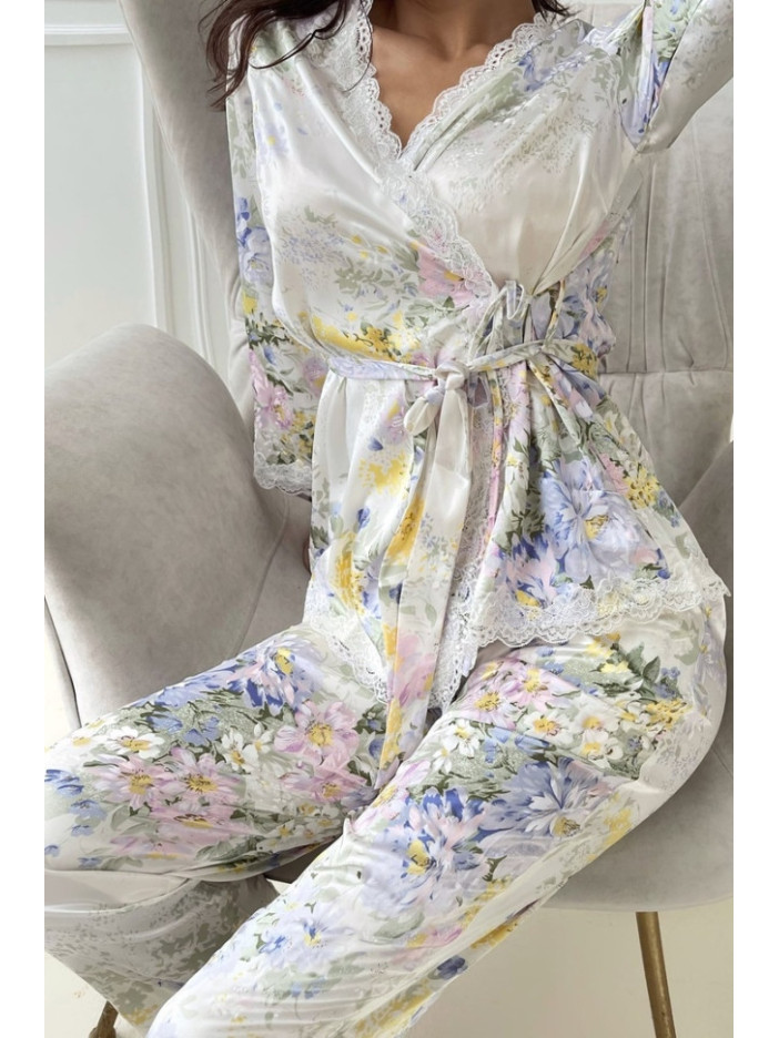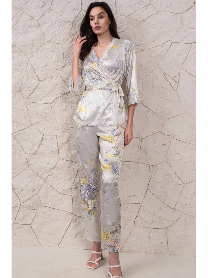 Комплект для дома "Lilianna" 5995 от Mia-Amore из натурального шелка состоит из длинных штанов и блузы с длинным рукавом,
