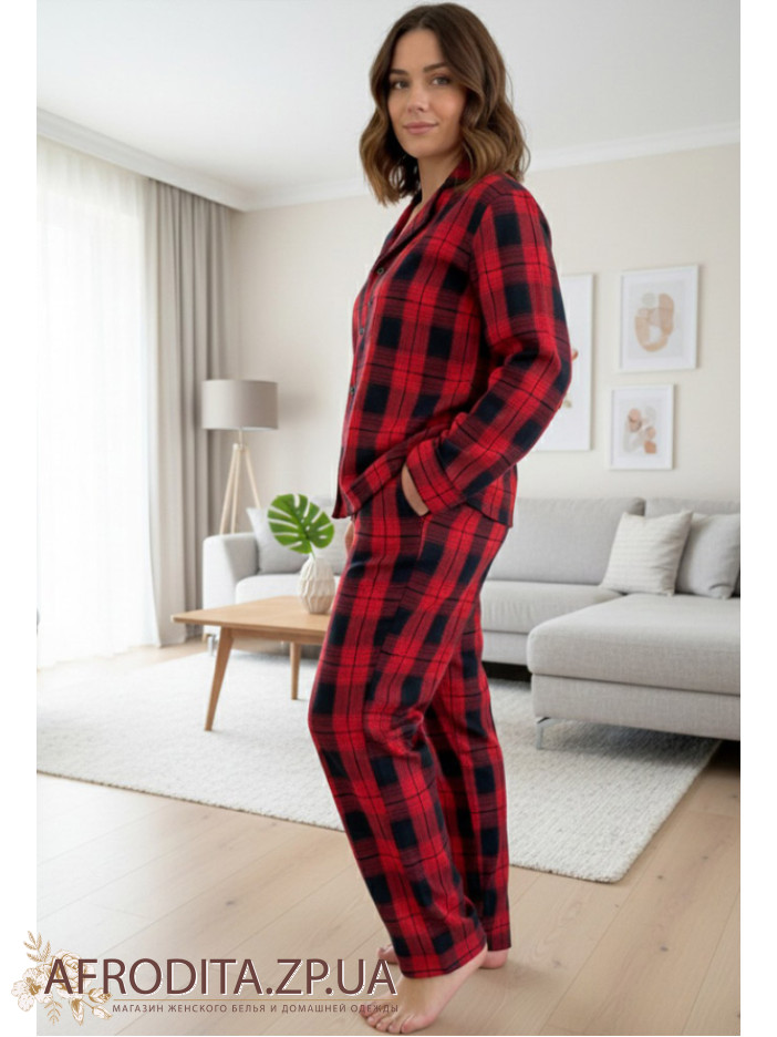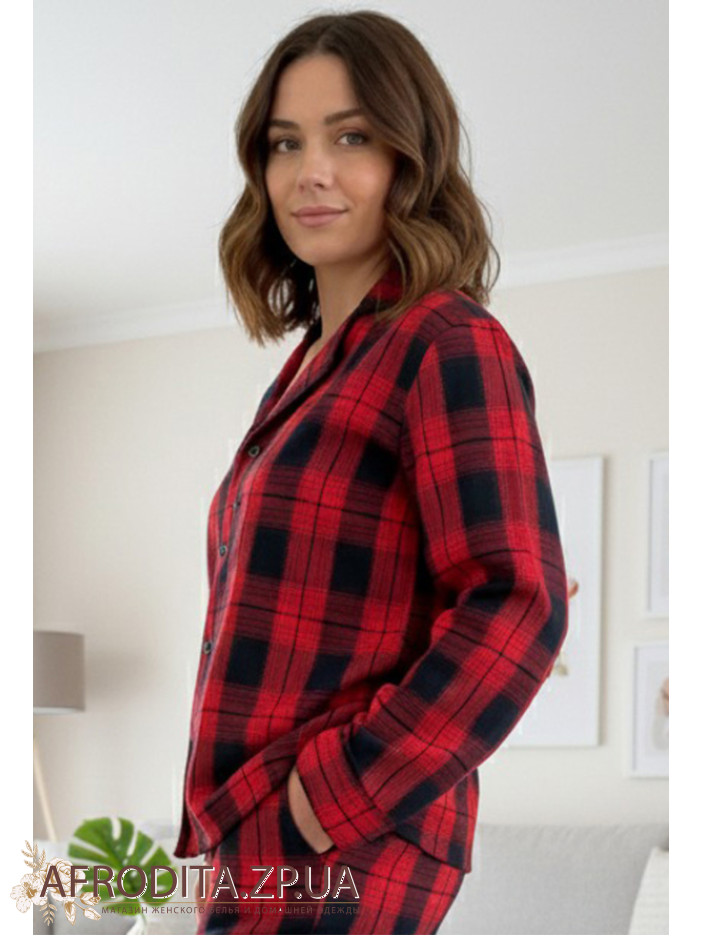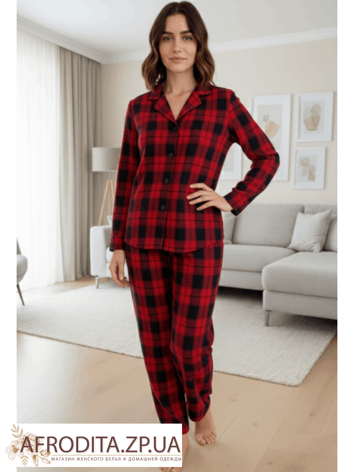 Элегантная женская зимняя пижама от украинского бренда Cosy выполнена из высококачественной мягкой фланели, которая согревает и дарит уют в холодное время года. Яркий красный цвет с синим клетчатым принтом создаёт стильный и живой образ, а комплект из рубашки и брюк прямого силуэта обеспечивает комфорт и свободу движений. Рубашка с длинными рукавами и отложным воротником застёгивается на пуговицы, рукава обработаны свободными манжетами для удобной посадки, а брюки оснащены мягкой резинкой в поясе, удобными боковыми карманами и внутренним шнурком для регулировки по ширине. Эта пижама идеально подойдёт для уютного домашнего отдыха и сна, а также станет прекрасным и тёплым подарком для любимого и близкого человека.