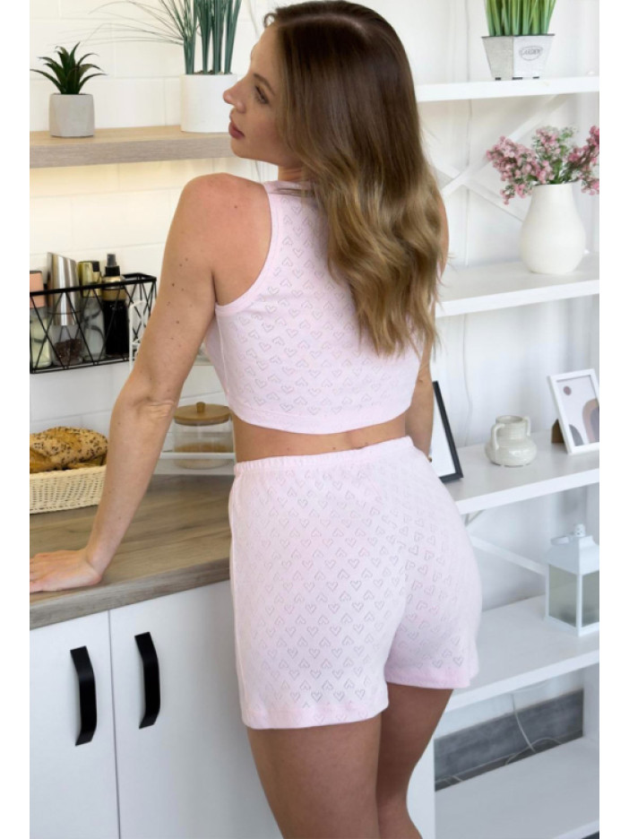 Невероятно комфортный женский комплект от украинского бренда Cosy — нежное сочетание уюта и романтики, выполнен из мягкого качественного хлопка с ажурной фактурой в виде сердечек в розовом оттенке, комплект включает топ прилегающего силуэта без рукавов с аккуратным круглым вырезом, удобные шорты прямого кроя с мягкой эластичной резинкой и лёгкий халат с длинными рукавами длиной выше колена, который завязывается на запах с помощью пояса, ткань приятно ощущается на коже и обеспечивает комфорт в течение всего дня и ночи, идеальный вариант для создания романтичного домашнего образа и прекрасный подарок для близкого человека