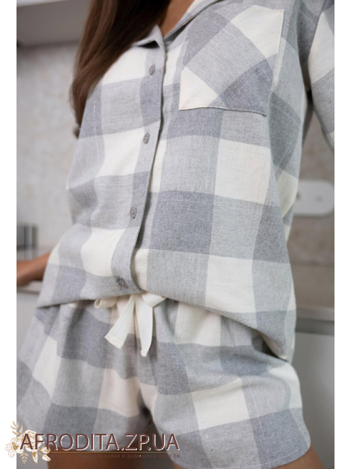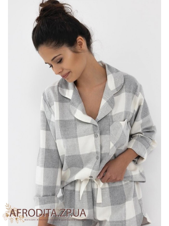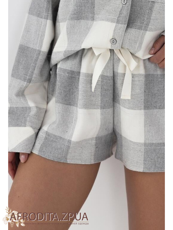 Пижама женская с шортами Sensis Joanna из мягкой и очень приятной к телу фланели. В комплект входит  рубашка на пуговицах с длинными рукавами и отложным воротником и коротких шорт на резинке.