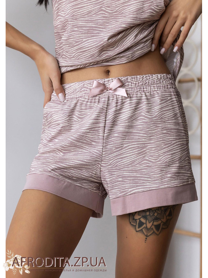 Женская пижама из хлопка 1576-16507 от торговой марки Roksana. Комплект состоит из майки на тонких регулируемых бретелях и шорт на резинке с бантиком.