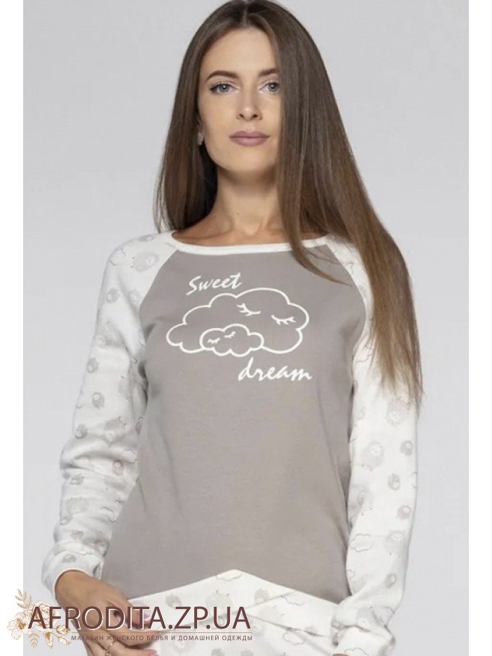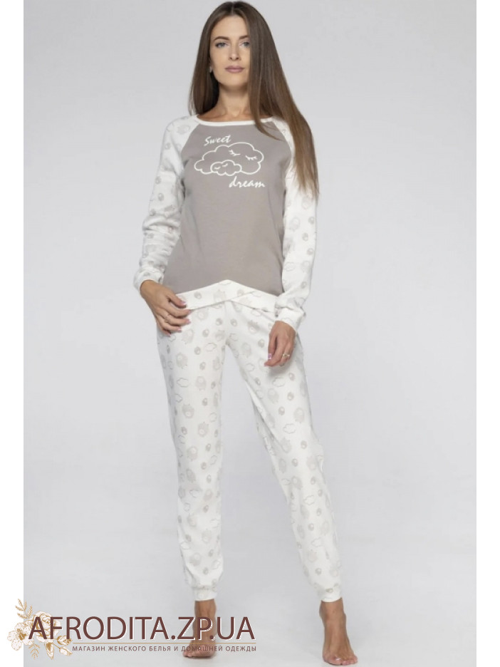 Женская пижама Wiktoria 1325 изготовленная из мягкого и очень приятного к телу хлопка. Комплект состоит из джемпера с длинными рукавами. Вырез горловины имеет округлую форму. Штаны на резинке прямого кроя.