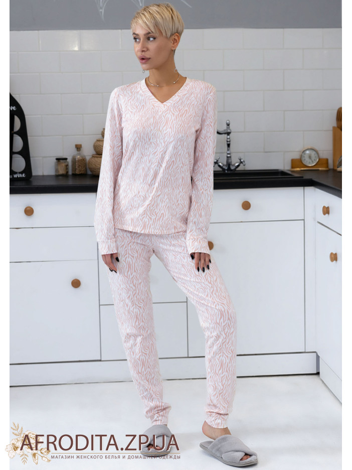Женская пижама с брюками 1583-16126 из высококачественного хлопка. Комплект состоит из джемпера с длинным рукавом и штанов на резинке прямого кроя.